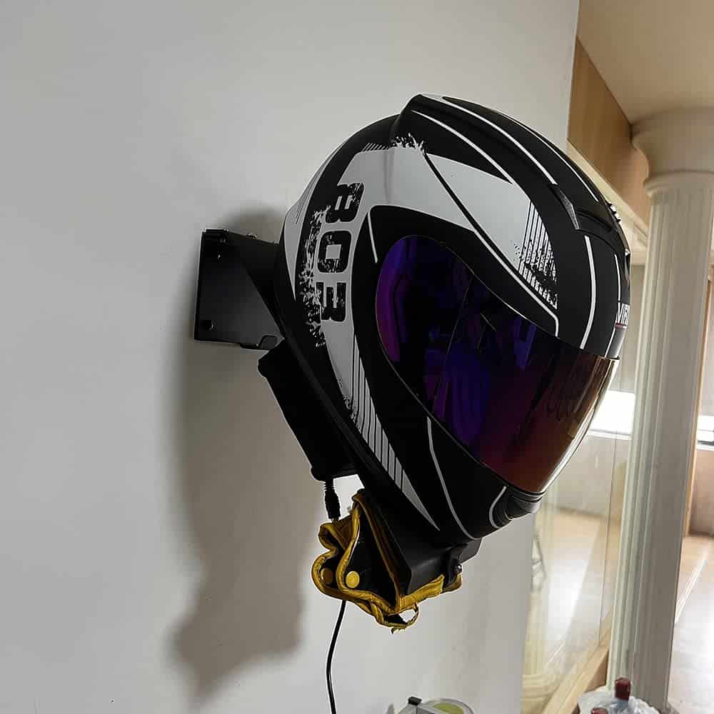 MULTIFUNCIONAL: Instalamos un gancho y una correa de goma debajo del soporte para cascos. Esto hace posible no solo colocar cascos, sino también colgar chaquetas y guantes.