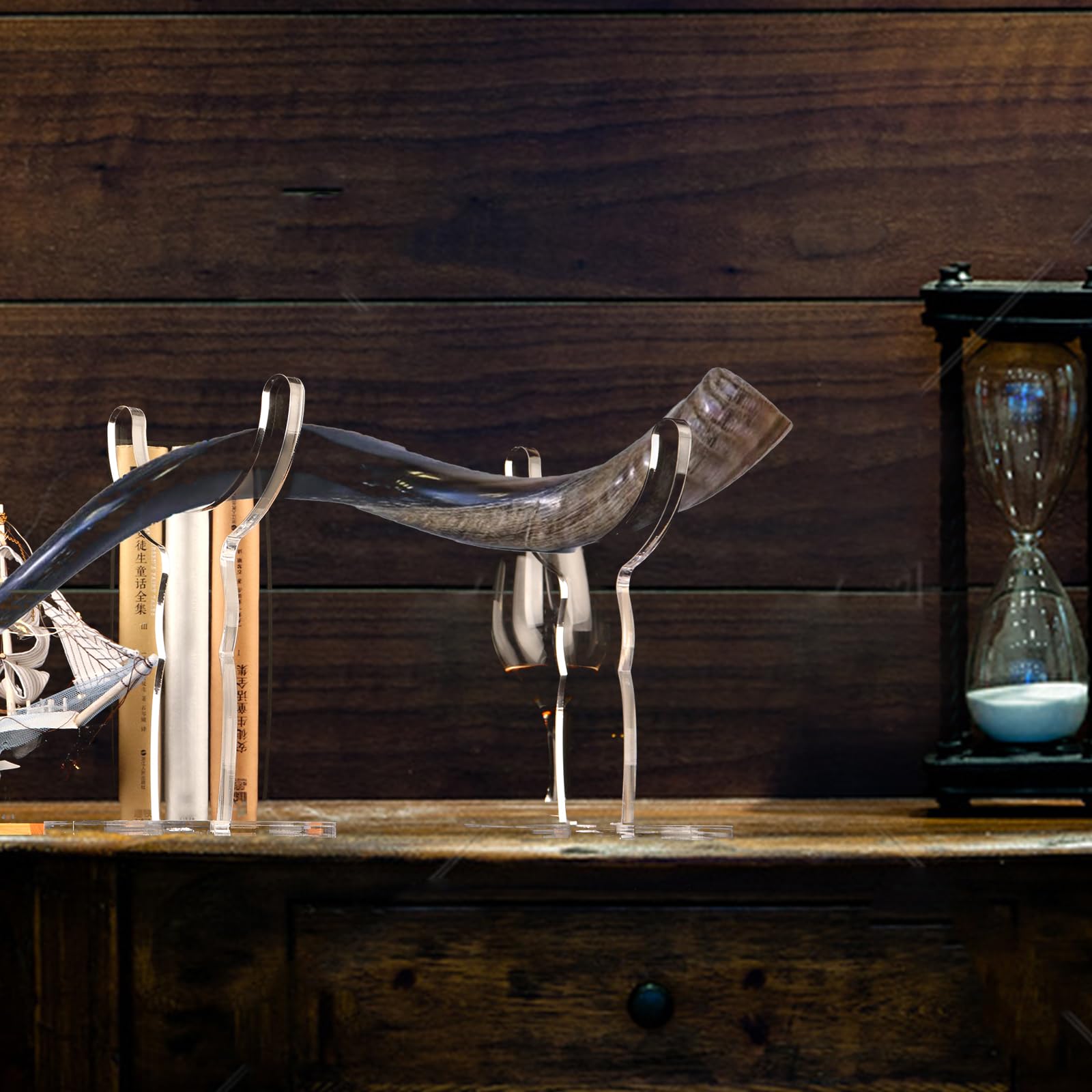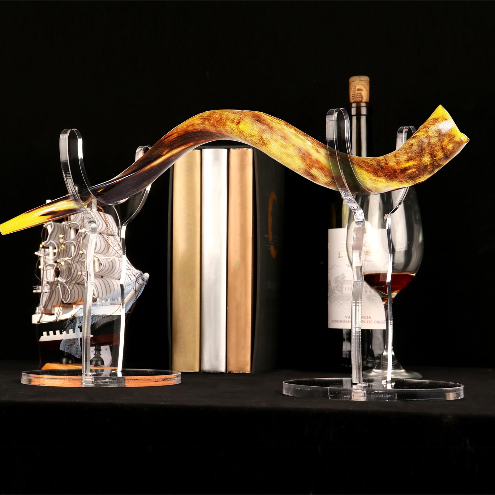 1. Estante de exhibición clásico: El estante de exhibición generosamente diseñado es muy resistente, el soporte es muy transparente, una vez colocado en tu amado Shofar, se convertirá en el centro de atención y completará la decoración de tu oficina o hogar;.