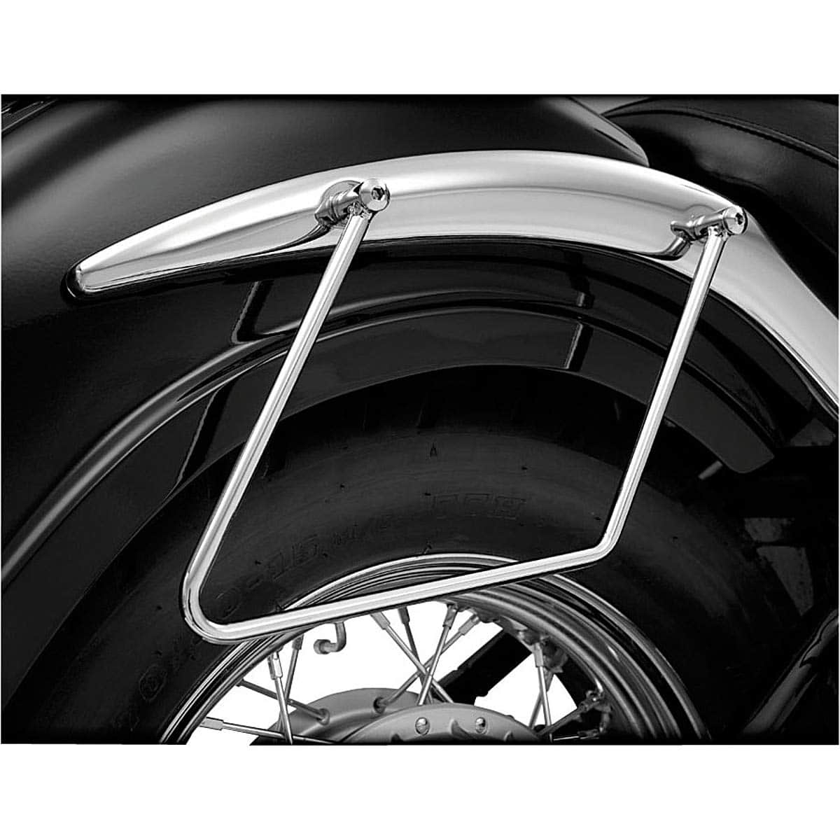 Este set de soportes de acero cromado para alforjas se monta al soporte del guardabarros trasero con el hardware suministrado, montándose en los agujeros existentes sin necesidad de perforar. Los soportes están diseñados para mantener las alforjas alejadas de las pinzas de freno, brazos oscilantes y la llanta trasera. Show Chrome Accessories también tiene respaldos de sissy bar que son compatibles con estos soportes. Puede ser necesario hardware adicional si se utilizan otros respaldos de sissy bar de posventa. Compatible con Suzuki VL800 Volusia 2001-2004, Boulevard C50/M50 2005-2008.