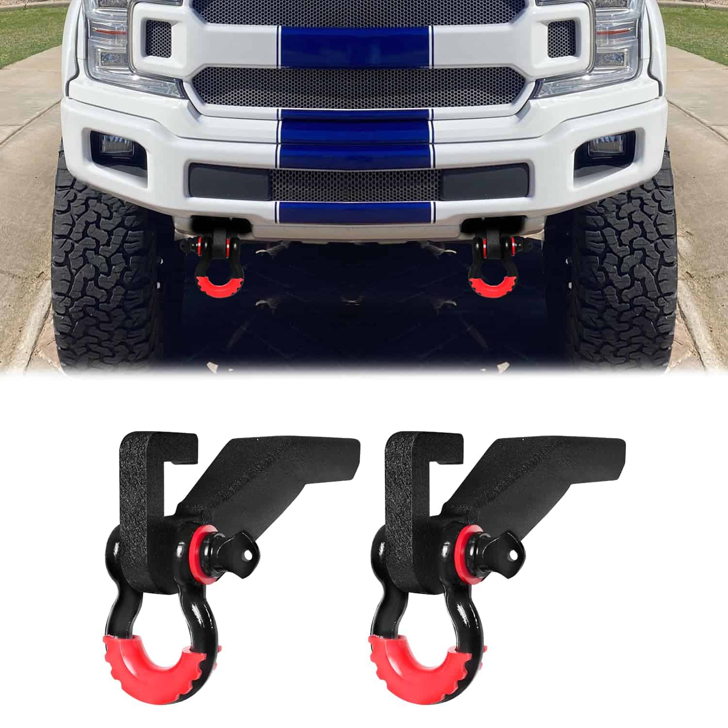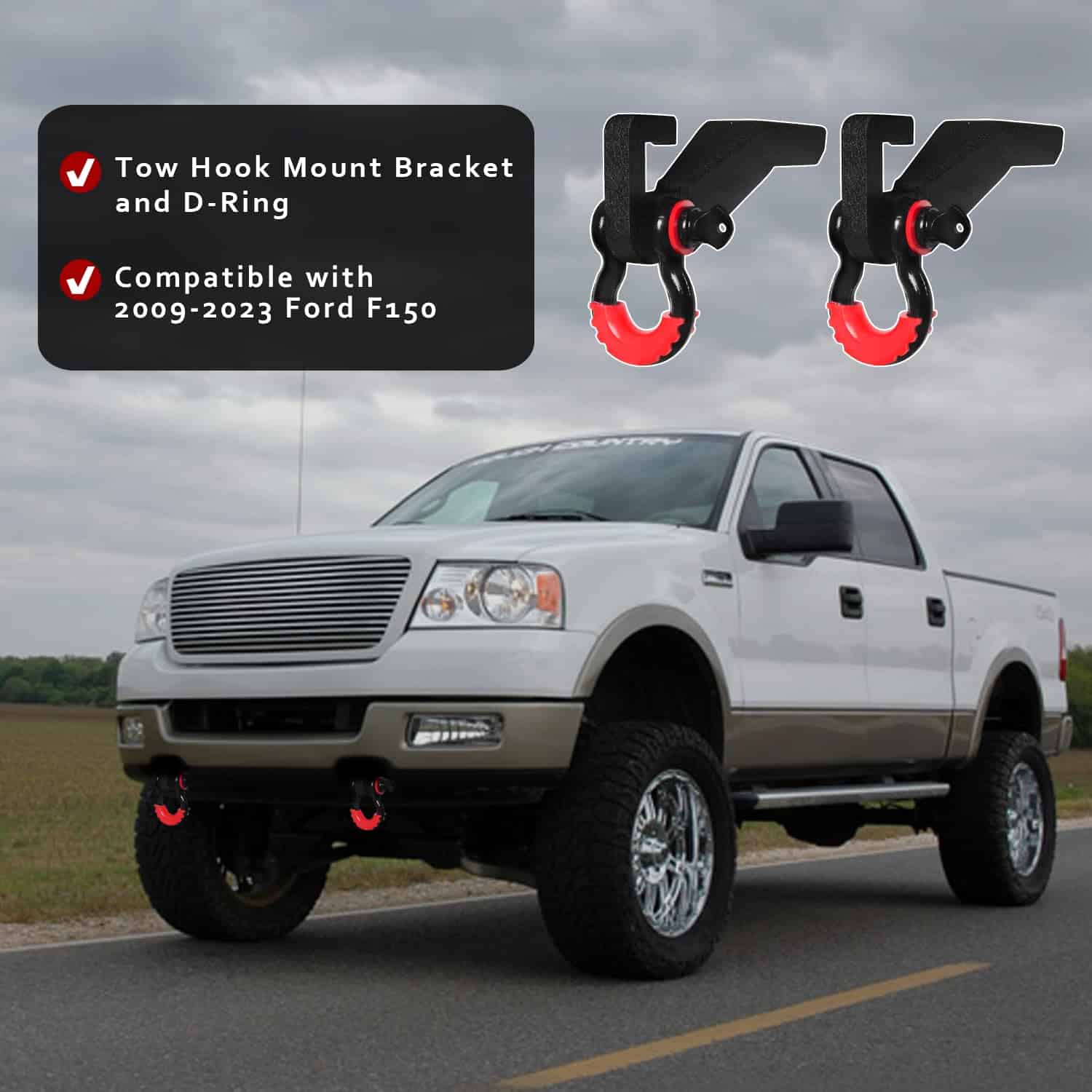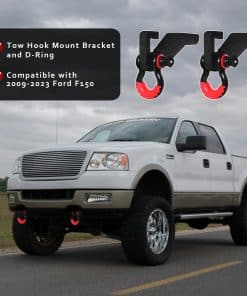 Ajuste: Soporte frontal de demonio compatible con Ford F150 2009-2023 – RS150. Puede funcionar con la placa protectora de fábrica, no es adecuado para la placa protectora postventa. Material del Soporte de Gancho: Acero resistente suave de 5/32″ de espesor y tubería de acero de tolerancia de precisión 2″ x 0.120″ para mayor dureza, recubierto en polvo negro para resistencia a la corrosión y durabilidad. Diseño: Los soportes Demon reemplazan los ganchos de remolque de fábrica, no es necesario reemplazar un parachoques postventa costoso. Puede servir para ambos fines, estéticos y de recuperación. Paquete: Incluye 2 soportes demonio, dos eslabones de 3/4 de pulgada y 2 aisladores. Instalación Fácil: El soporte D-ring F150-RS150 reemplaza el gancho de remolque del parachoques delantero de fábrica, no se requiere modificación o perforación, la instalación se puede completar en 10 minutos.