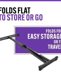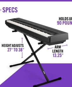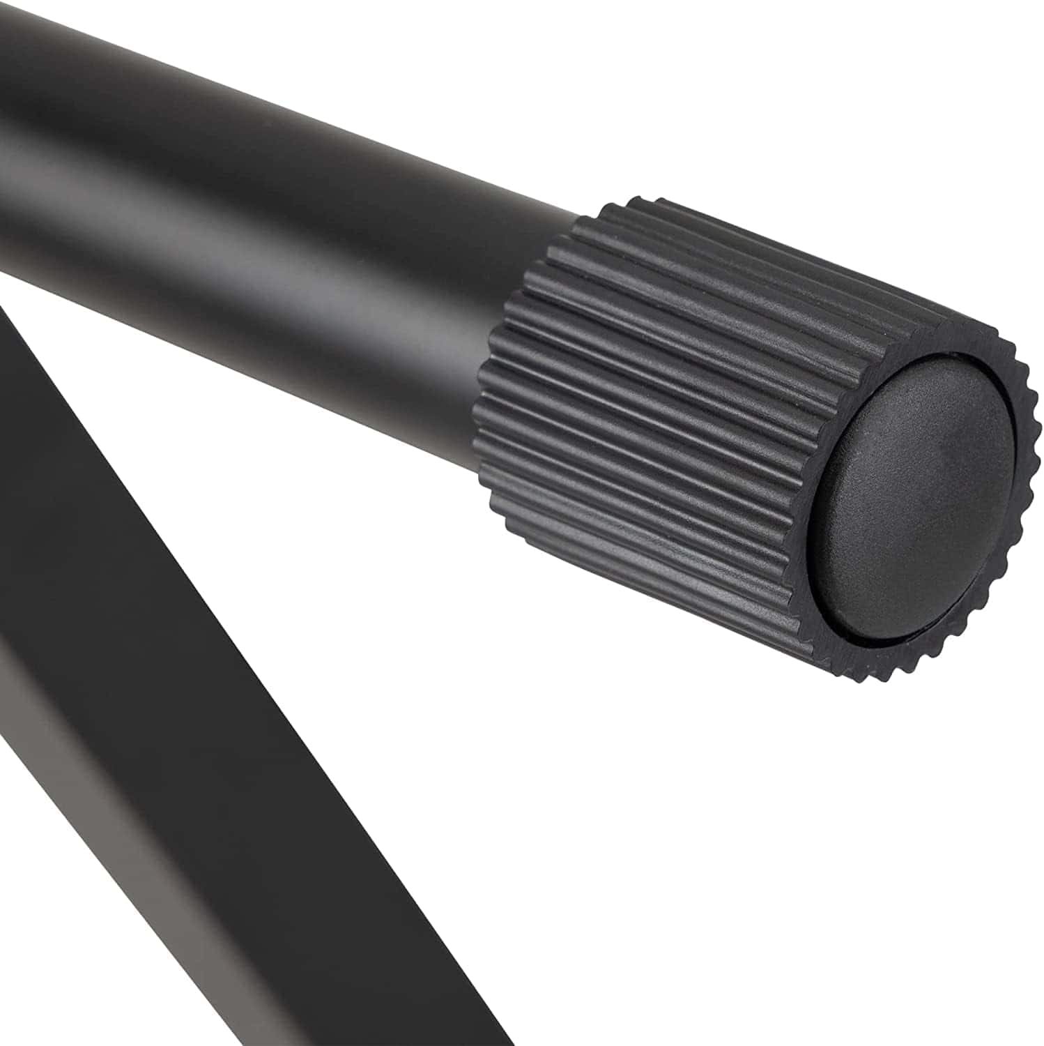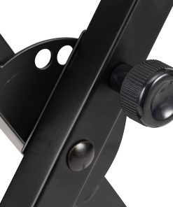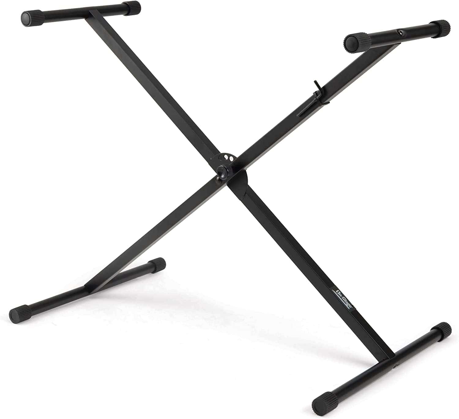 Nuestro soporte de teclado KS7190 de una sola X proporciona una base amplia y estable y un soporte sin deslizamiento para teclados de formato pequeño. Este soporte versátil se ajusta en altura y longitud para adaptarse a diferentes tamaños de teclados y estilos de interpretación, y cuenta con mangas de brazo antideslizantes ajustables para adaptarse a una variedad de anchos de teclado. El soporte completo se pliega completamente para un almacenamiento y transporte conveniente.