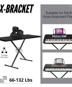 1. Soporte de teclado en estilo «X». 2. 7 posiciones de bloqueo rápido. 3. Plegable y ajustable. 4. Soporte universal que se adapta a casi cualquier teclado. 5. Ajusta de 12″ a 38″ de altura.