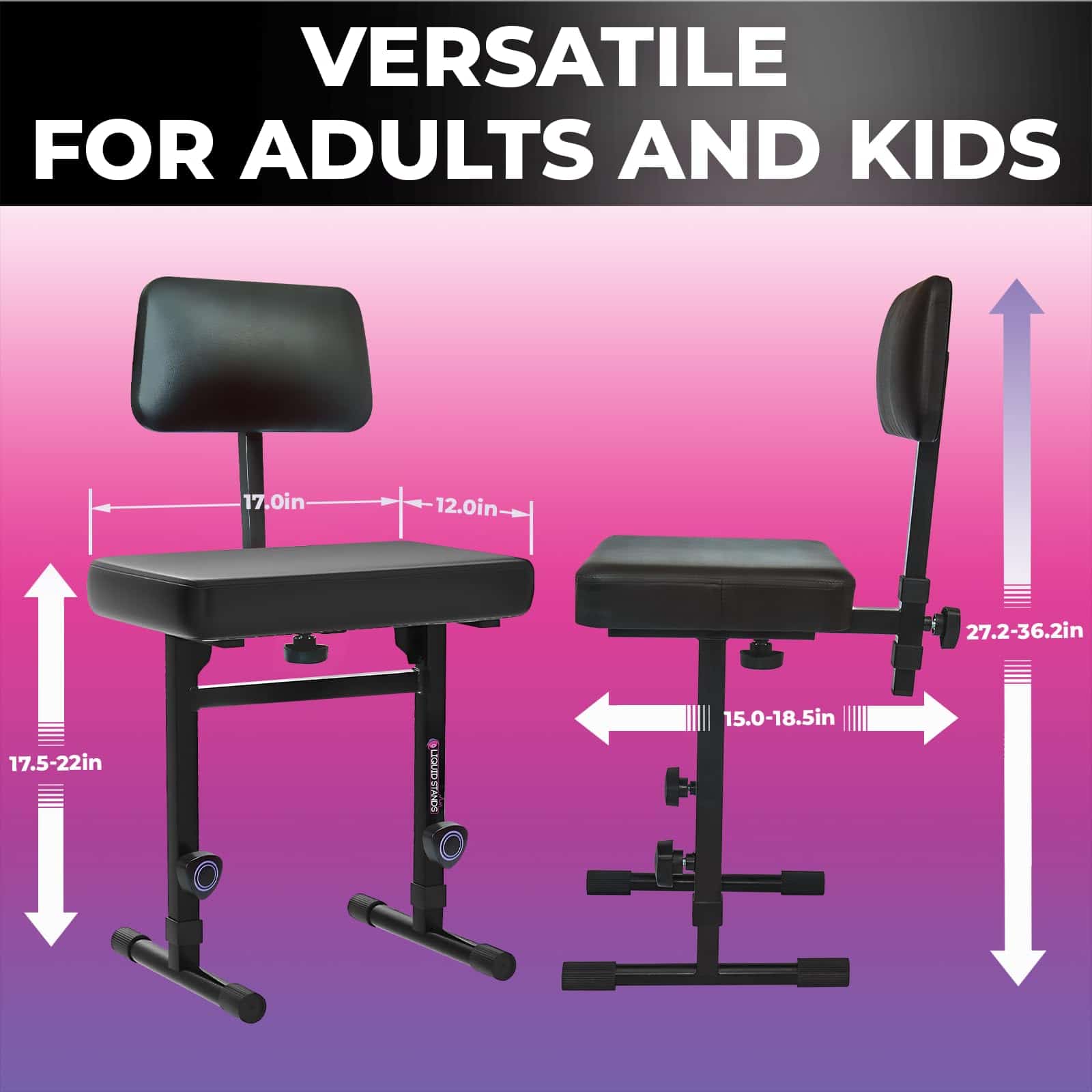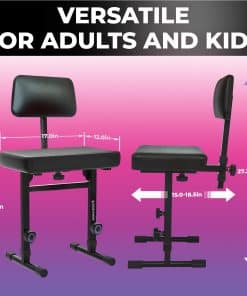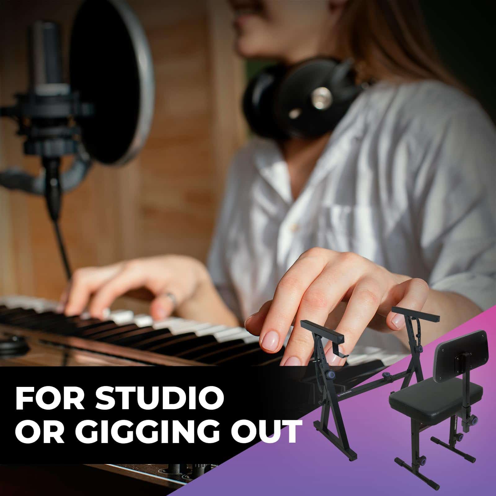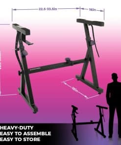 3. Límite de peso de 250 libras para los teclados más pesados: La construcción resistente de este soporte de piano y banco soporta los instrumentos musicales y equipo más pesado. Un soporte en forma de Z ofrece más estabilidad y es menos probable que se vuelque que los comunes soportes en forma de X. Ideal para usar en el escenario, en casa o en el estudio.