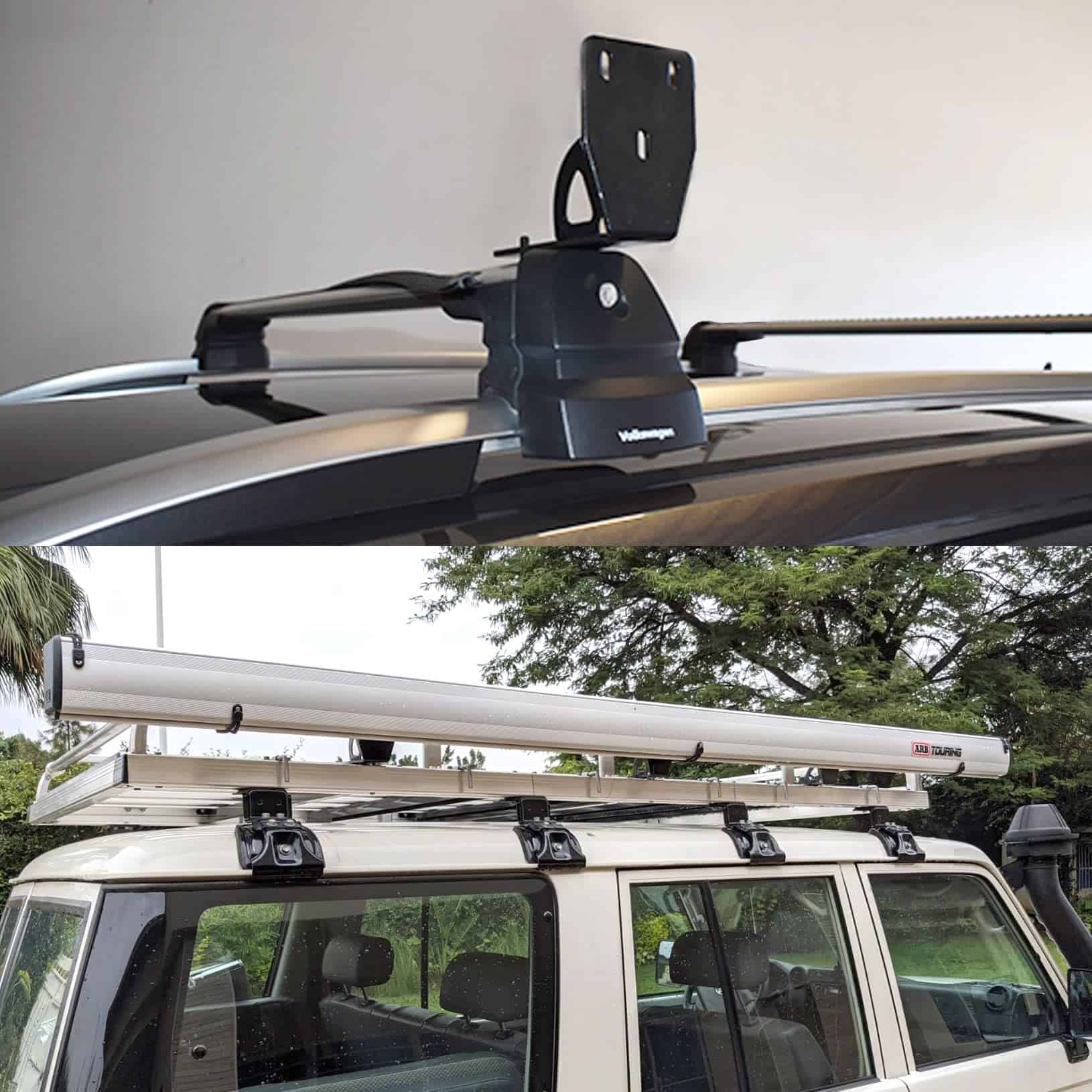 AJUSTE: Se ajusta a la mayoría de las rejillas de techo, jaulas de carga y toldos. Compatible con: barra Thule profession, wing bar, Aero bar, barra Rhino heavy duty. Dos métodos de instalación: Invertido Vertical