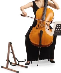 3. Estéticamente Elegante: ¿Cansado del típico soporte de metal negro para instrumentos El soporte de violonchele de suelo está fabricado en madera dura maciza, mostrando una veta de madera natural rica que irradia una estética simplista y elegante. Este soporte de violonchelo de madera llamará la atención de cualquier visitante en tu hogar, provocando una respuesta de «¡Wow, qué bonito!». Las líneas bien elaboradas y pulidas de este soporte de violonchelo le dan el aspecto de una pieza fina de mobiliario, transformando tu querido violonchelo en una obra de arte decorativa también.