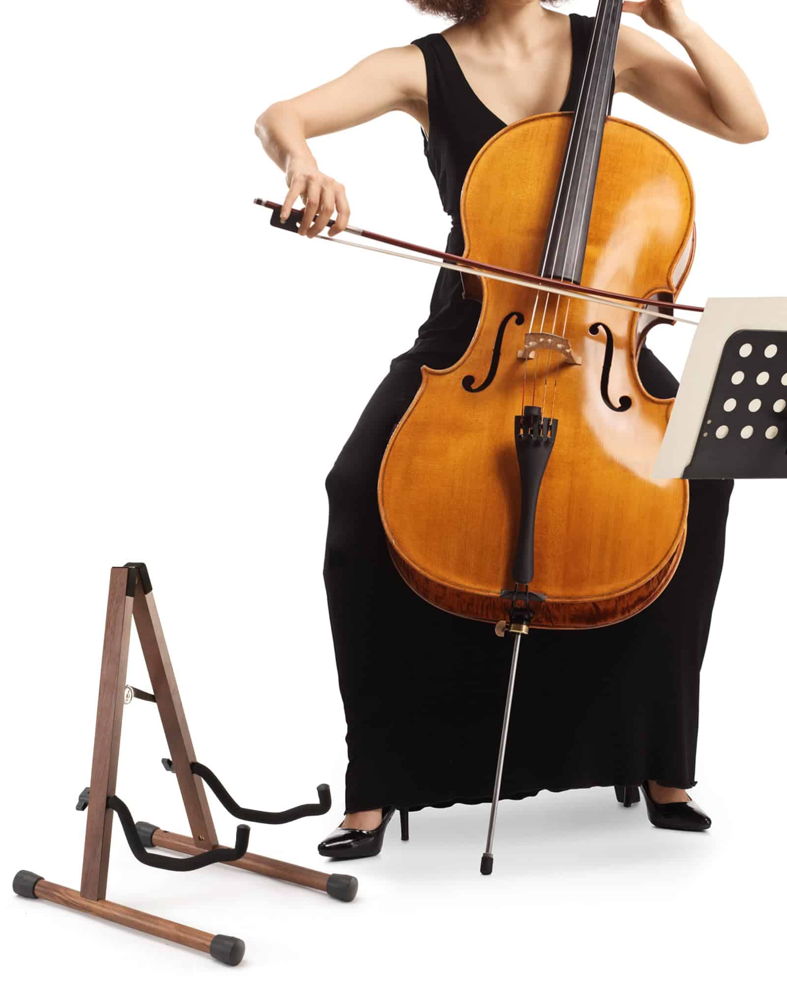 1. Más Estabilidad: Si te preocupa que tu violonchelo se caiga por un estornudo o una brisa, es hora de considerar el resistente soporte de violonchelo de Musbeat. A diferencia de otros soportes de metal ligero, el estable soporte de violonchelo de Musbeat cuenta con una barra de soporte más larga y pesada, ofreciendo una huella más amplia y una estabilidad mejorada para tu instrumento. Con este sólido soporte de violonchelo de madera, puedes colocar tu violonchelo con confianza sin ninguna preocupación de que se vuelque.