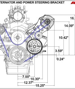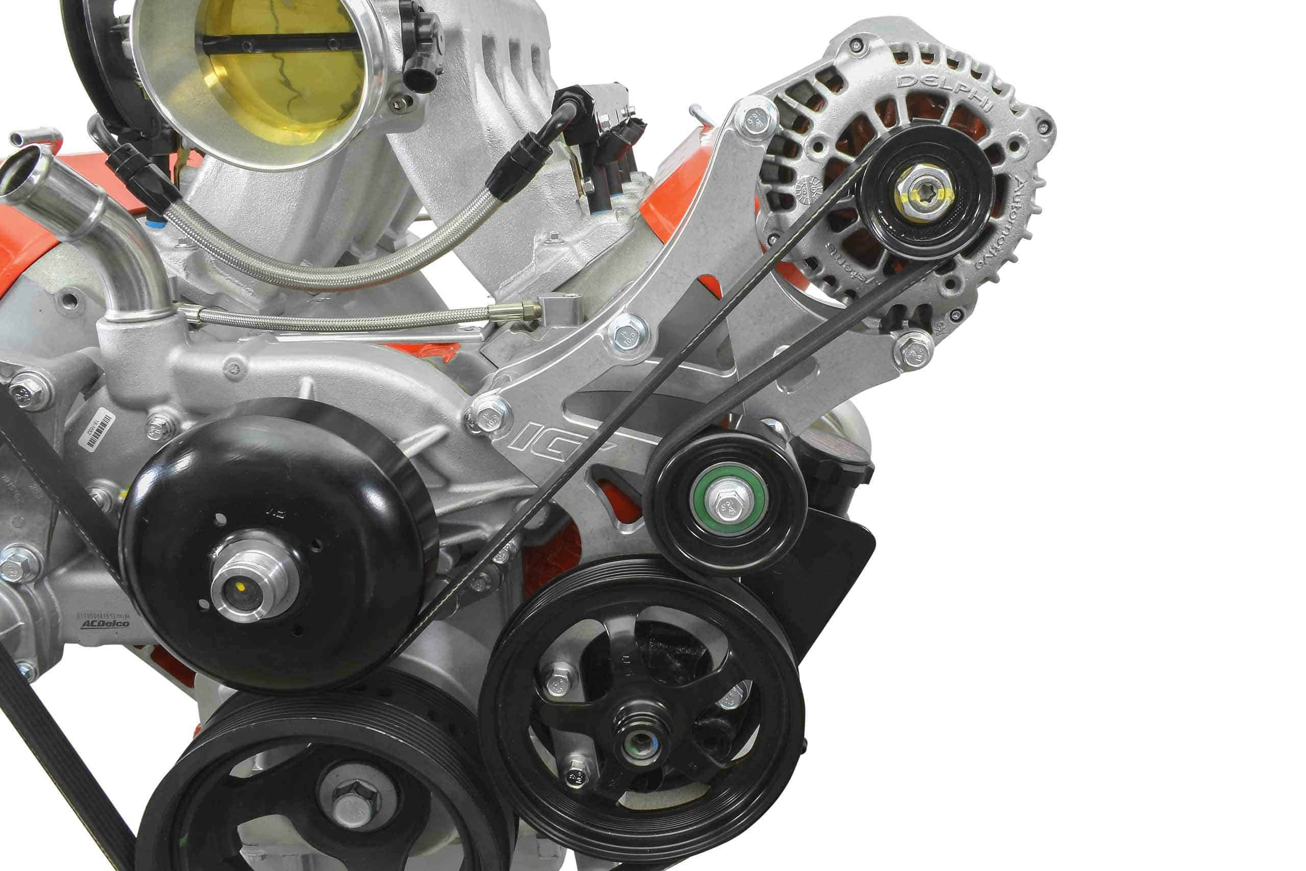 Soporte del alternador y la bomba de dirección hidráulica del lado del conductor para camiones LS / p Mueve el alternador delante de la cabeza del conductor, sobre la tapa de la válvula / li Acercar la bomba de dirección hidráulica 1 pulgada desde la ubicación original / li Compatible con motores de la serie LS de camiones/SUV 1999-2014 / li Fabricado en Wichita, Kansas con aluminio de grado aeroespacial producido en EE. UU. / li Incluye: soporte, polea loca y hardware de montaje / li / ul p / p Compatibilidad / p p Bomba de dirección hidráulica y polea para camiones/SUV (15909830 y 12604004) / p p Alternador para camiones/SUV (ICT BAL300) / p p Alternador para camiones/SUV (cualquier año, cualquier amperaje) (ICT ALT300) / p p NO compatible con alternadores con patrones de pernos de Corvette, CTS-V o Camaro 2010-2015 / p p / p p Correa / p Compatible con: 775K6 (77.5 pulgadas) correa cuando se usa con un alternador de 105 amperios (ICT ALT300), 780K6 (78.0 pulgadas) correa con alternadores de 145/160 amperios.