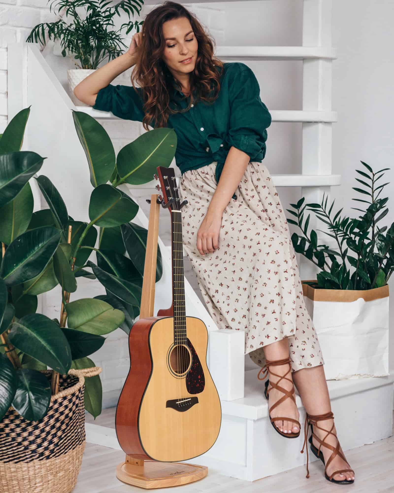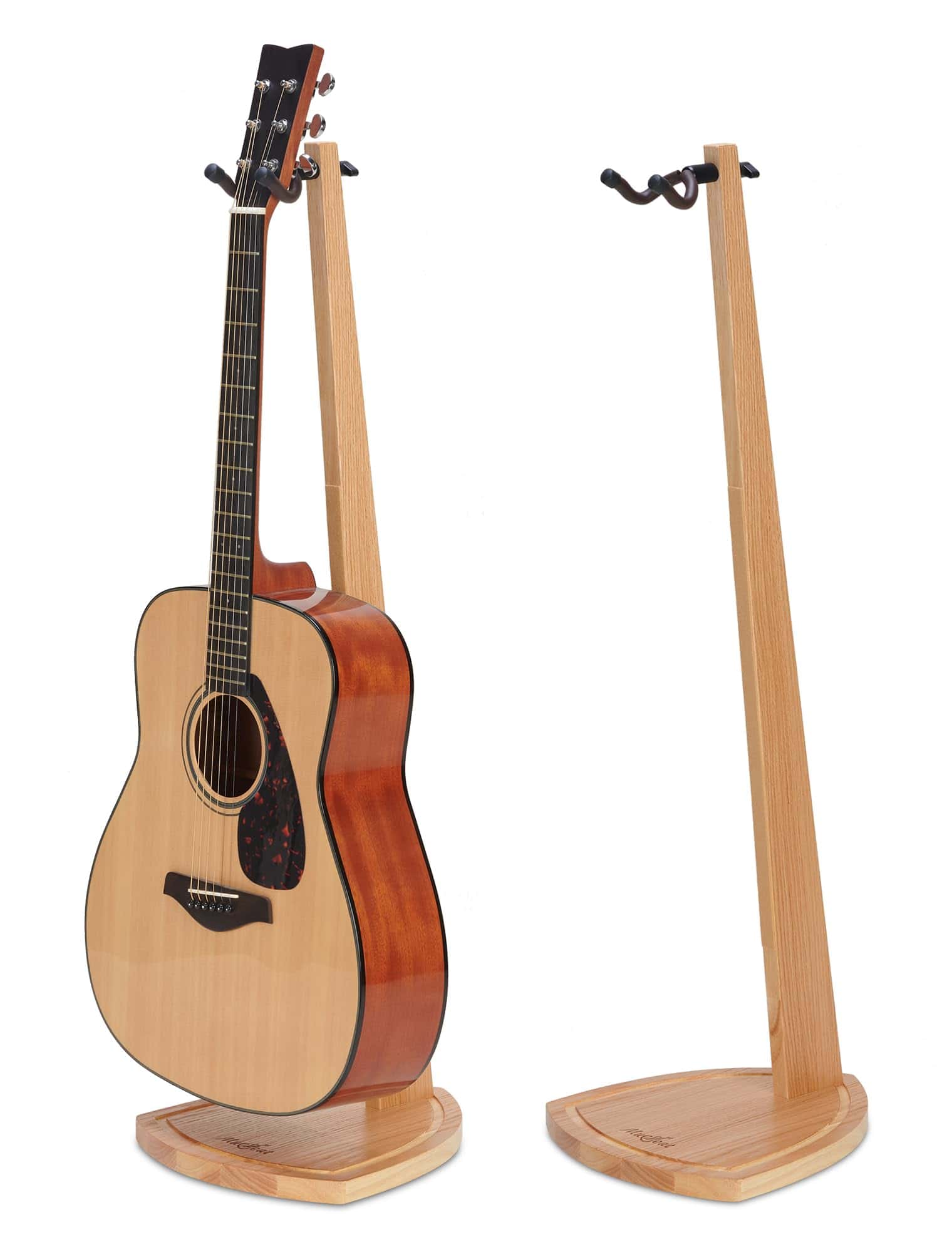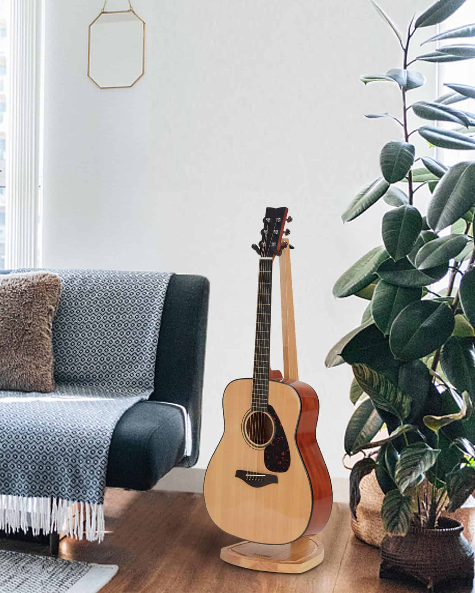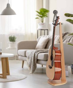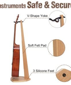 1. Estéticamente Elegante y Funcional: ¿Cansado de los soportes de metal negro invariable? Hecho con madera maciza, este soporte de guitarra de madera con rica veta natural presenta su belleza de una manera elegante y clásica que captará la atención de cualquier visitante en tu hogar y dirá, «wow – eso es «! La línea bien trabajada y pulida de este soporte de guitarra dual hace que parezca una pieza de mobiliario y convierte a tu guitarra amada en una obra de arte decorativa también.