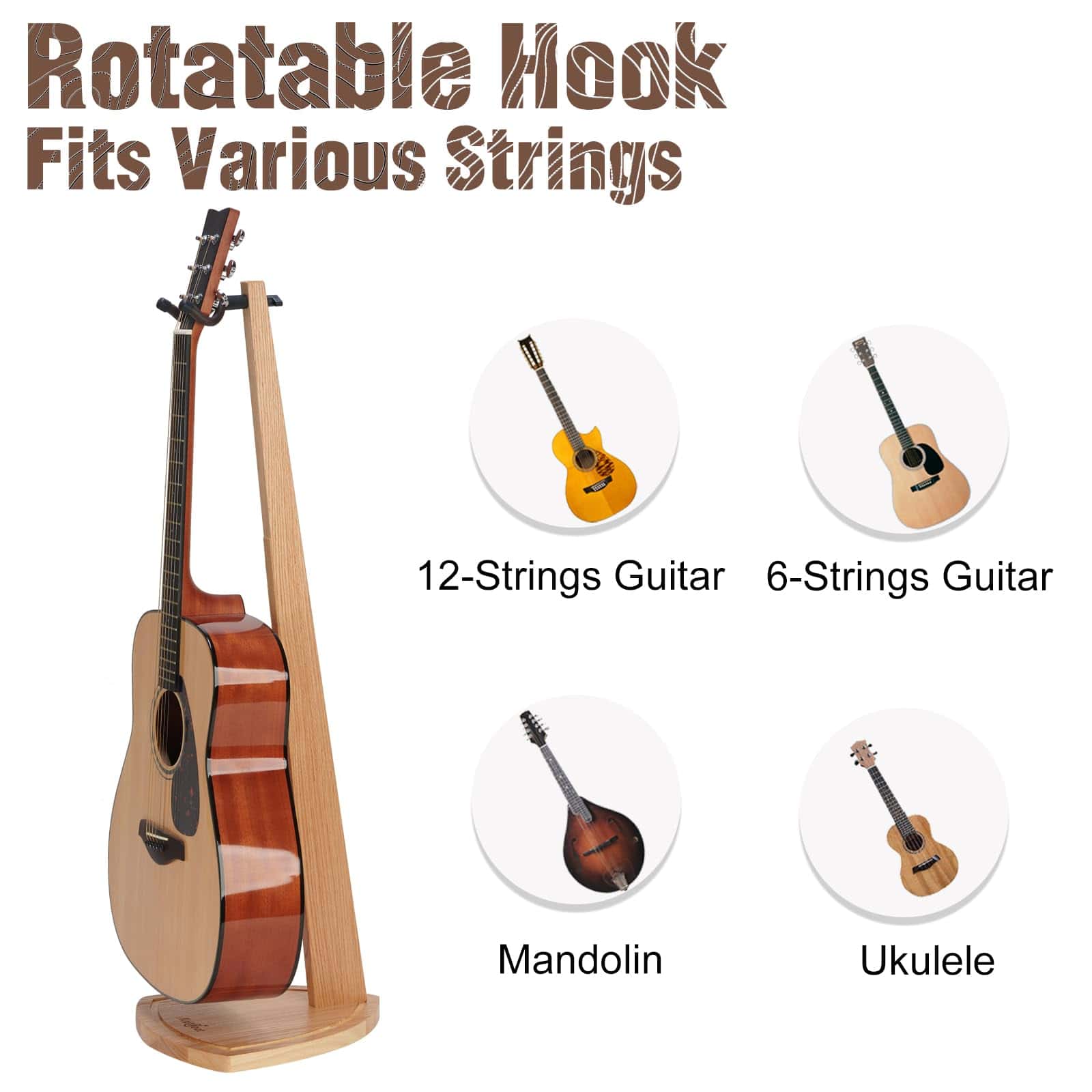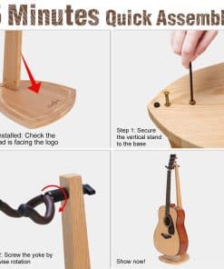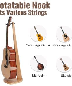 2. Se Adapta a Varios Tipos de Cuerdas: La altura desde el yugo hasta la base es de 36.5 pulgadas, cubriendo la mayoría de los instrumentos de cuerda como el ukulele, violín, guitarra acústica, guitarra eléctrica y mandolina. Teniendo en cuenta la compatibilidad de las cabezas de guitarra de diferentes formas como rectas, inclinadas o en forma de pañuelo, el soporte de madera Musbeat 2 pack está diseñado especialmente como giratorio 360 grados y se adapta muy bien a todos ellos.