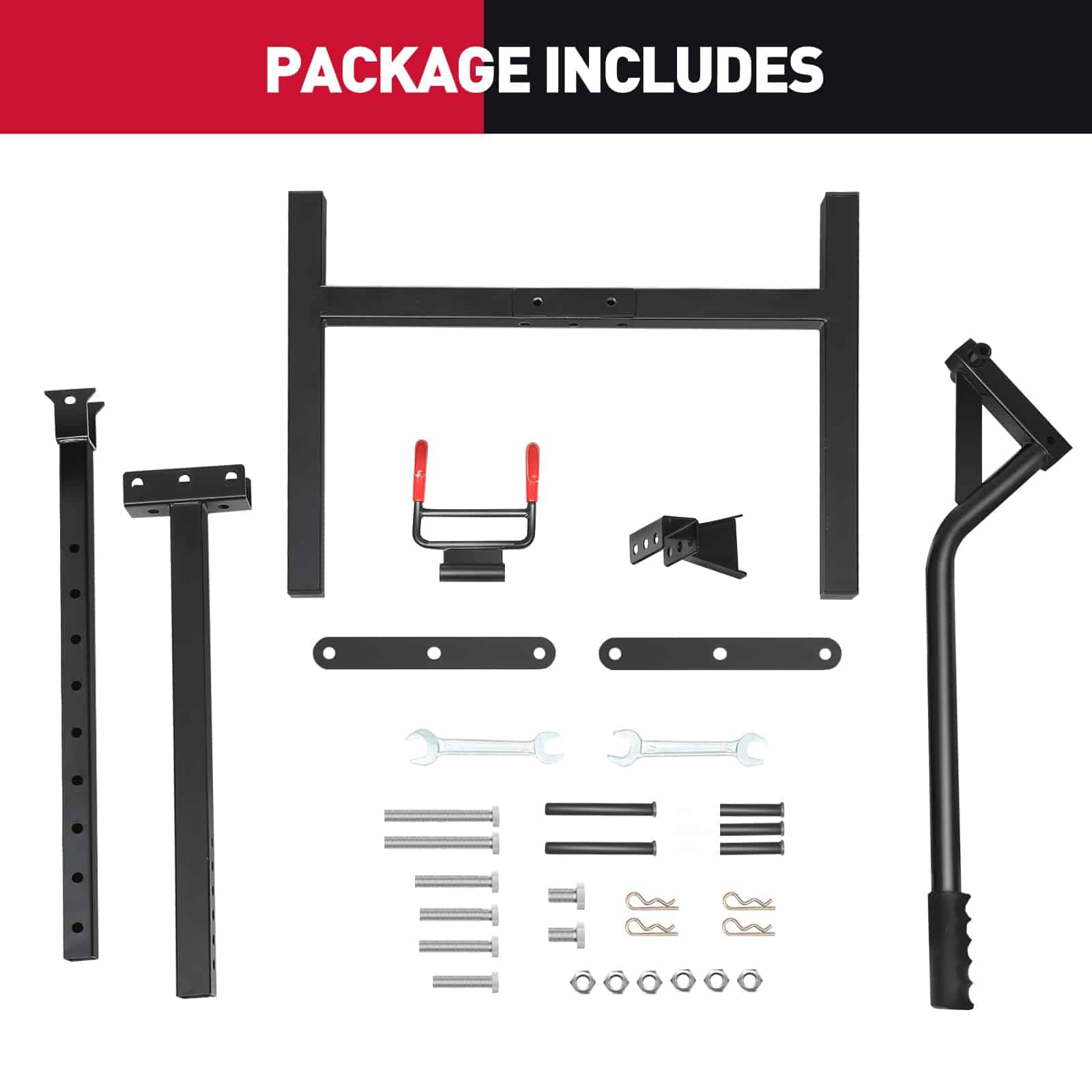 3. Nuestro soporte de elevador de motonieve de diseño de grado actualizado cuenta con un pasador de seguridad que puede bloquear el soporte de la motonieve en su lugar para evitar lesiones. Levanta fácilmente tu motonieve desde el extremo delantero o trasero para mantenimiento o almacenamiento.