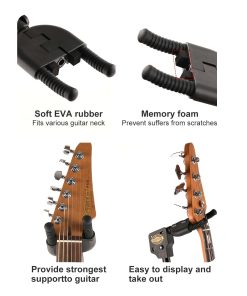 3. Protección de esponja suave: El soporte cuenta con un revestimiento de esponja suave que brinda una capa protectora para tu guitarra, evitando cualquier rayadura o daño en el cuerpo del instrumento.