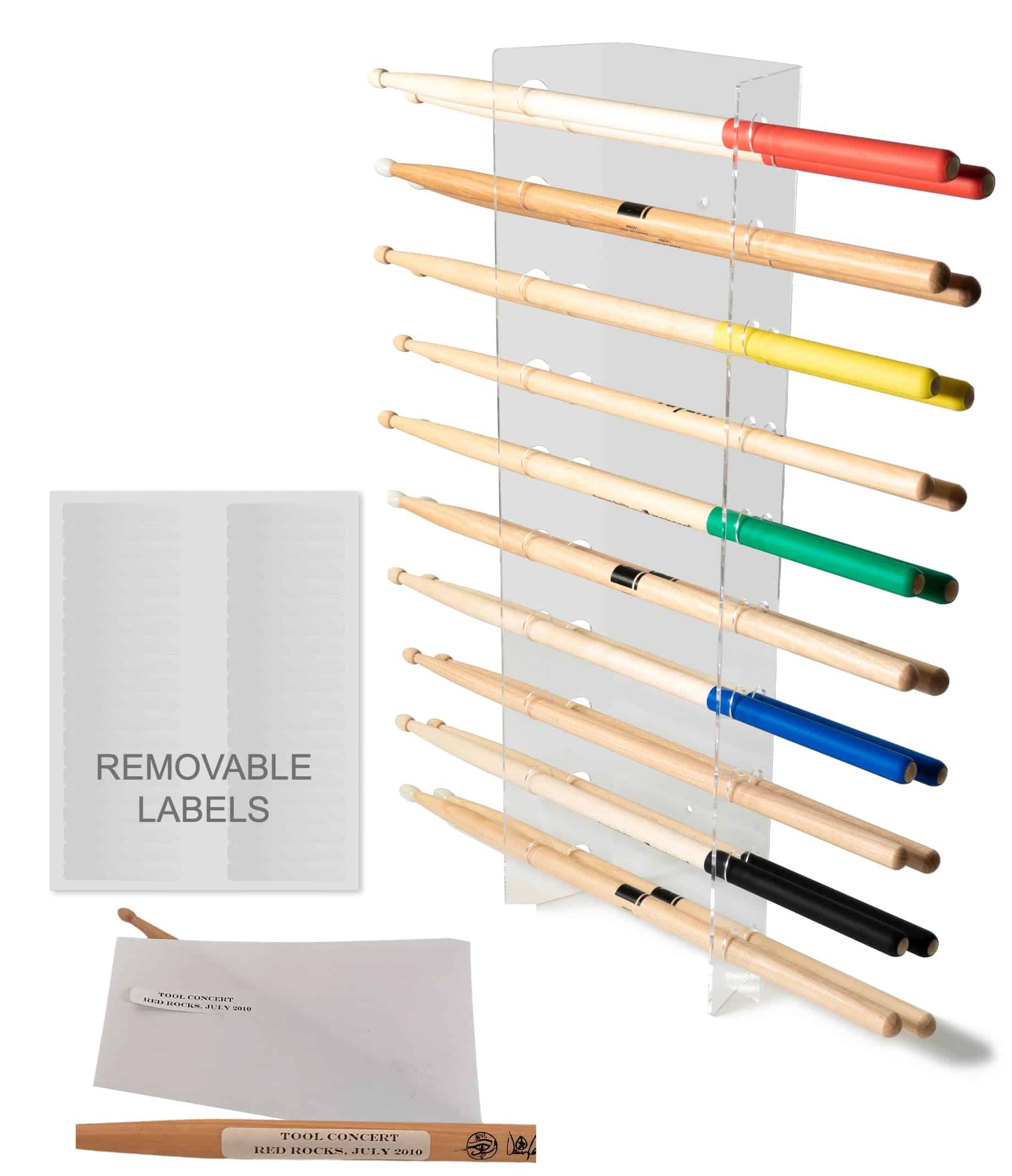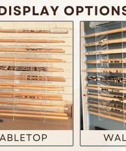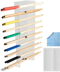 Ahora puedes presumir tu colección de baquetas ganada con esfuerzo con este exclusivo soporte de exhibición de baquetas de cristal claro. El resistente y sencillo diseño de acrílico protege y muestra tus baquetas favoritas, ya sea colgadas en una pared o colocadas sobre un estante. Completo con herrajes de montaje, un paño de microfibra para eliminar huellas dactilares y una hoja de etiquetas removibles en blanco para personalizar tu colección con detalles de conciertos, nombres de bandas, fechas y más! Nota: Herrajes de montaje incluidos.