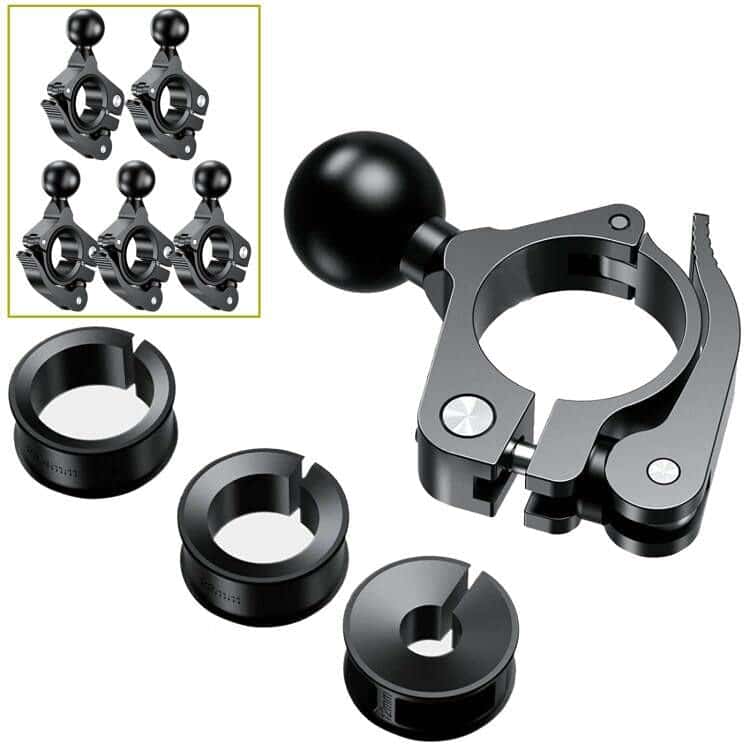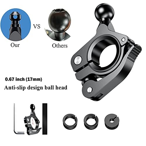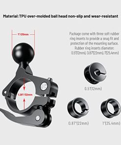 El soporte para bola de montaje Sptchapn utiliza insertos de goma para evitar aflojamientos en vibraciones altas al montar en manillares de motocicletas o bicicletas, así como en otros rieles redondos dentro de las dimensiones indicadas. Este soporte de bola de 1 pulgada se adapta a manillares de 0.5» a 1.26» de diámetro. Está fabricado en aleación de aluminio de alta calidad, siendo duradero y confiable en los entornos más exigentes. El soporte de bola adopta un diseño de moldeo por CNC, con un rendimiento antideslizante. Es compatible con los soportes RAM y componentes de socket, incluyendo brazos de doble socket, soportes de navegación, soportes para cámaras de acción, soportes para montaje de teléfonos para bicicletas y motocicletas, así como otros soportes para dispositivos electrónicos. Adecuado para bicicletas, motocicletas, cochecitos, bicicletas de montaña, bicicletas de montaña, bicicletas de carretera, carritos de golf, scooters eléctricos, vehículos todo terreno, etc.