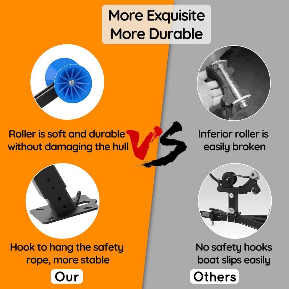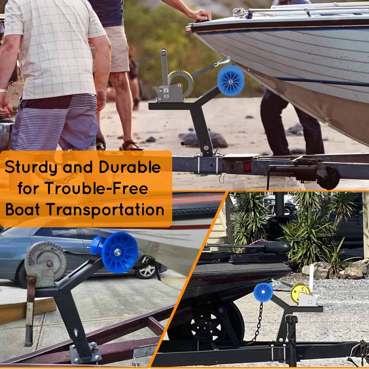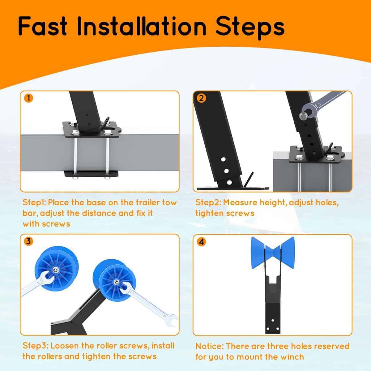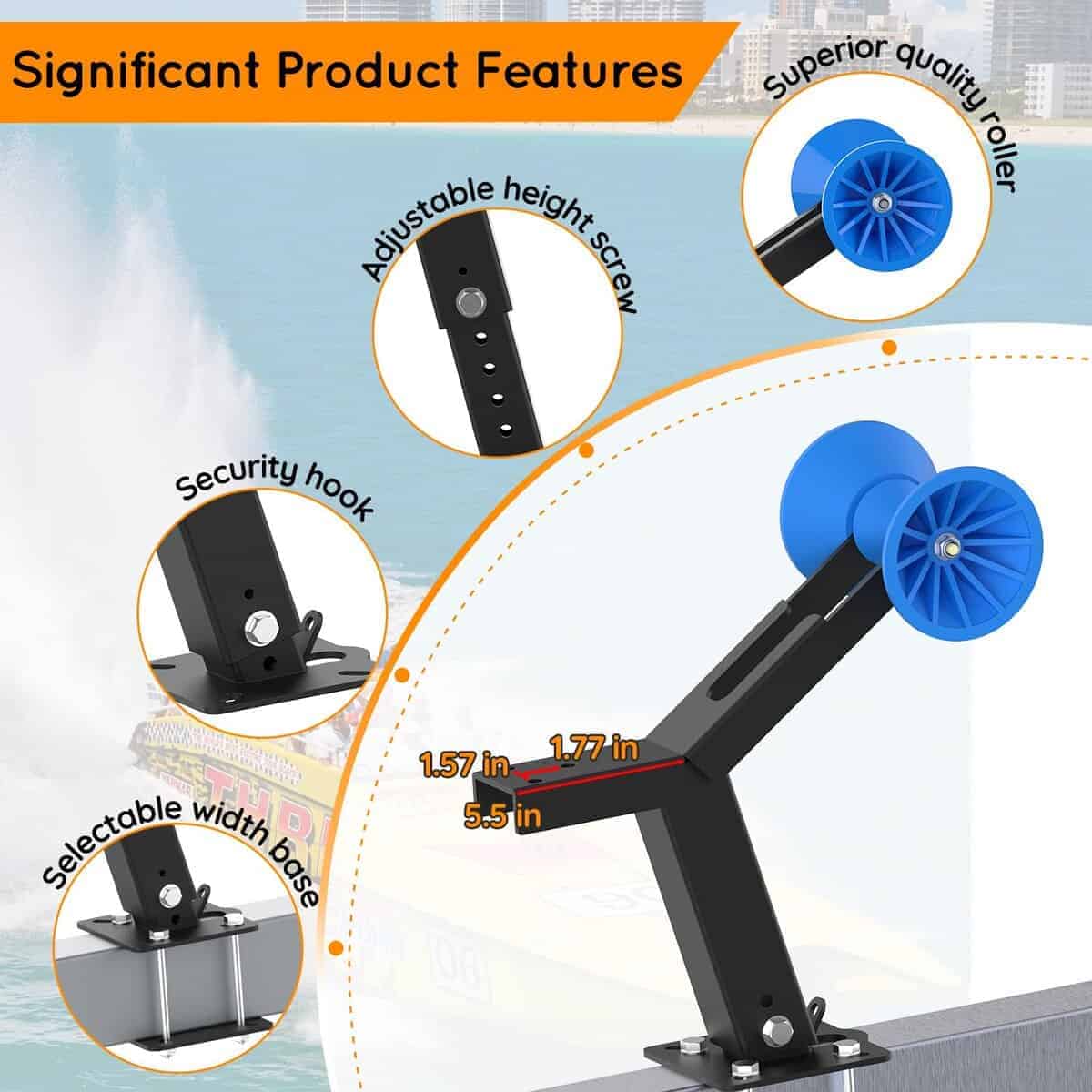 Este soporte para cabrestante de remolque de barco ajustable arriba y abajo de DITKOK está diseñado para garantizar la seguridad y estabilidad del barco durante el transporte en el remolque. Fabricado con metal de alta calidad y una superficie bien pintada, este soporte para cabrestante es duradero y resistente a la corrosión, lo que reduce el riesgo de daños. El rodillo de poliuretano del soporte es flexible y resistente al desgaste, protegiendo el casco del barco. Con altura ajustable y amplia disponibilidad de ancho, este soporte es adecuado para una variedad de embarcaciones, como lanchas rápidas, lanchas de pesca y embarcaciones a motor. La estructura simple y la instalación rápida hacen que este soporte de cabrestante sea fácil de usar. Por favor, ten en cuenta que el agujero inferior del tornillo de este producto no está disponible, y asegúrate de medir el ancho del enganche de tu remolque antes de comprar.