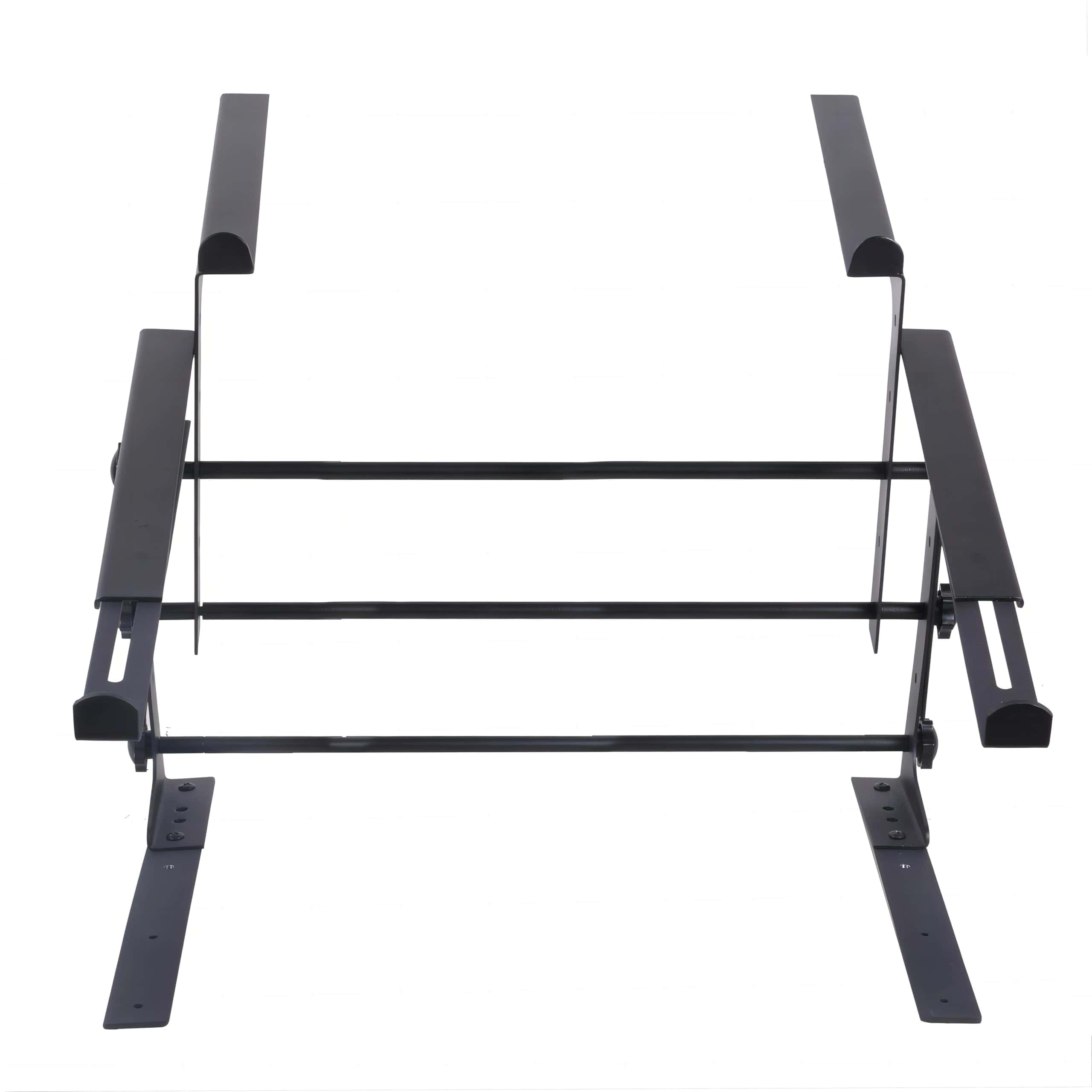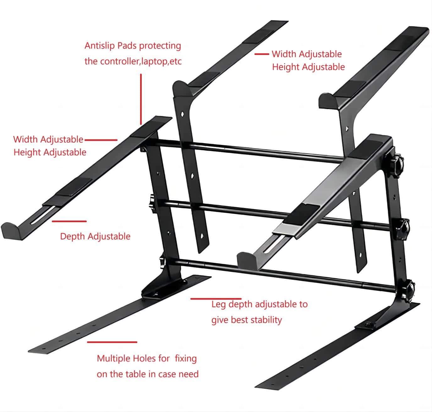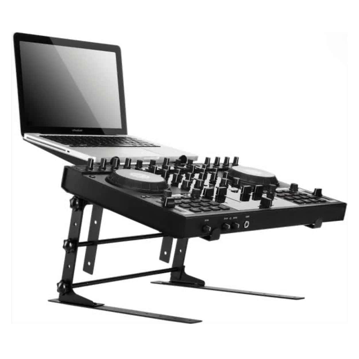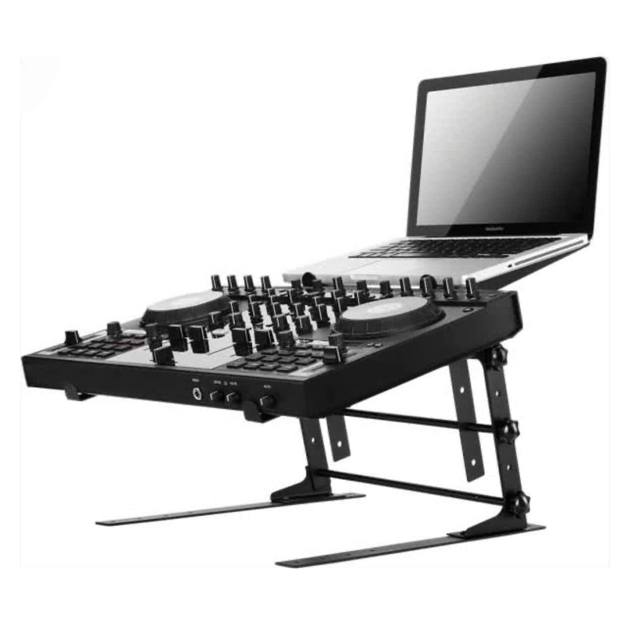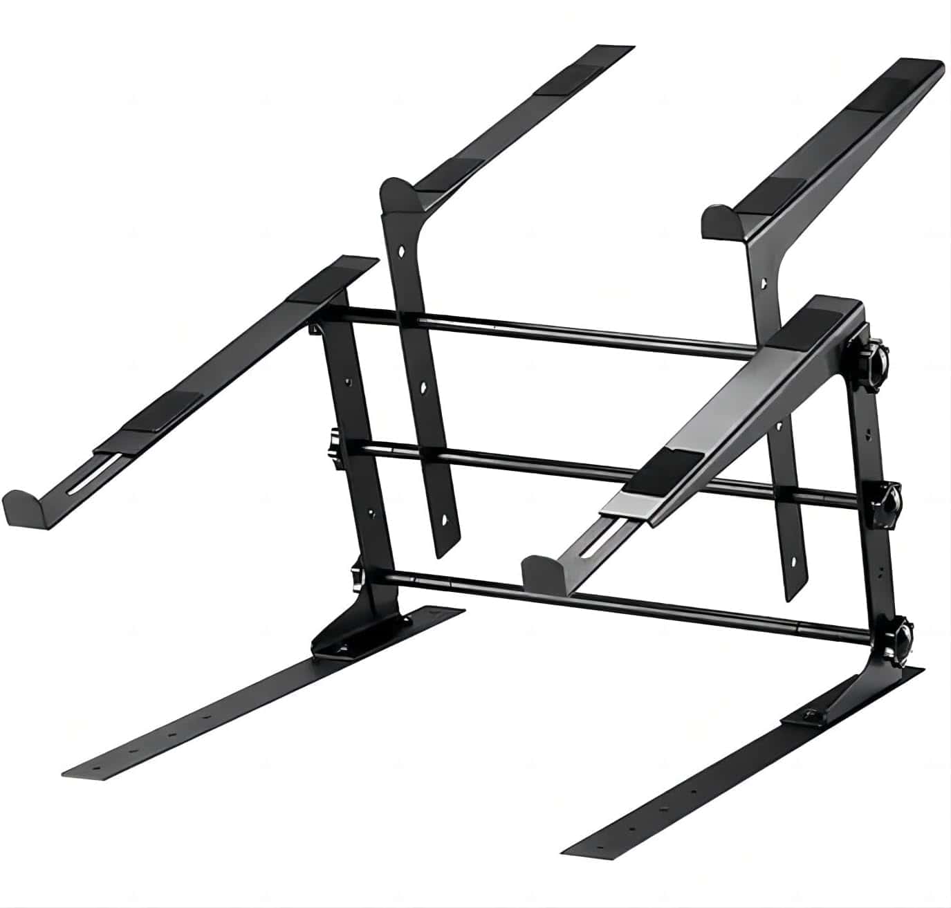 Soporte para controladores STRONG HOLD SH-LS27, perfecto para DJs que buscan una solución ergonómica y estable para su laptop de DJ. Este soporte es ajustable en altura y ancho, lo que le permite adaptarse a diferentes tamaños de laptops y equipos. Cuenta con almohadillas de EVA para proteger la laptop u otro equipo de arañazos y daños. Además, tiene un tope alto para laptops más gruesas u otro equipo, proporcionando una base sólida y segura. Los agujeros inferiores permiten fijar el soporte de forma permanente en la mesa, brindando una mayor estabilidad durante la actuación. ¡Haz que tu configuración de DJ sea más cómoda y profesional con este soporte de alta calidad!