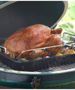 1. Diseño 2 en 1: Este soporte para costillas de BBQ tiene un diseño único 2 en 1 que hace el trabajo sin necesidad de múltiples accesorios; puede usar un lado para el pavo mediano y voltearlo para utilizar el otro lado para hacer costillas, ¡podrá hacer costillas, un pollo entero, lomo de cerdo, costillar y mucho más, todo con este soporte! 2. Cocine 6 perfectas rejillas de costillas al mismo tiempo: Las barras espaciadoras permiten un calor por convección para cocinar las 6 rejillas de costillas perfectamente al mismo tiempo, ¡este soporte en V hace que la parrilla sea rápida y fácil, especialmente cuando no hay suficiente espacio en la parrilla; muy útil cuando cocina grandes cantidades de comida al mismo tiempo para una gran familia! 3. Soporte para costillas de acero inoxidable de grado alimenticio de alta calidad: Este soporte para costillas de asado es de construcción sólida, hecho de acero inoxidable 304 de alta calidad, grueso y resistente, durabilidad duradera. Perfecto para cocinar lento. 4. Fácil de limpiar: se recomienda lavar a mano, no tiene demasiados surcos o puntos difíciles de alcanzar, lo que facilita la limpieza; remojar en agua caliente durante aproximadamente 5 minutos antes de intentar limpiarlo; ¡poner un poco de aceite de cocina en el soporte antes de usarlo y la limpieza será mucho más fácil! 5. Se adapta a parrillas de 18″ o más de diámetro para cocinar: perfecto para Big Green Eggs, Kamado ceramic grills, excelente para Weber y otras parrillas de 18″ o más de diámetro. GARANTÍA DE CALIDAD DE 12 MESES