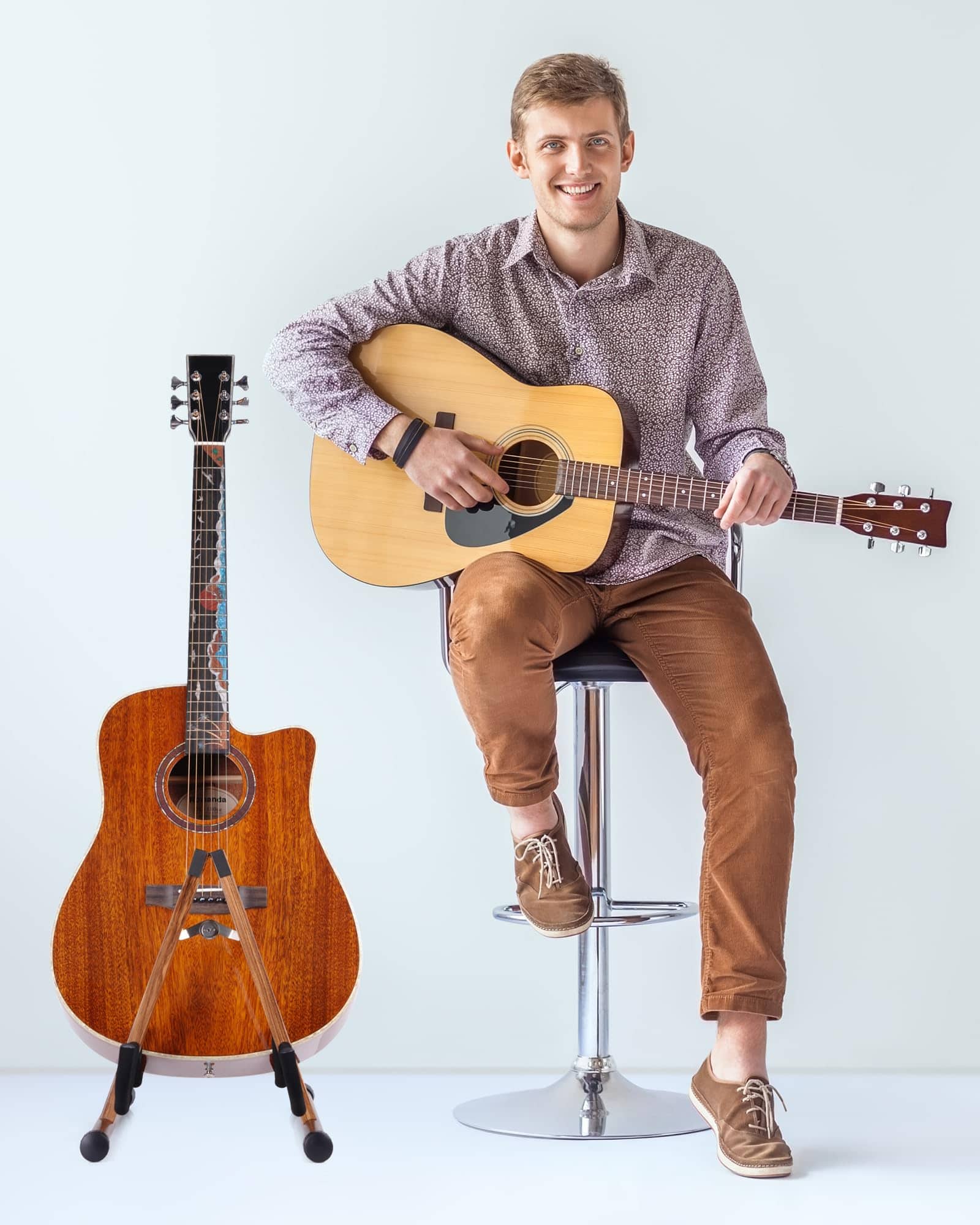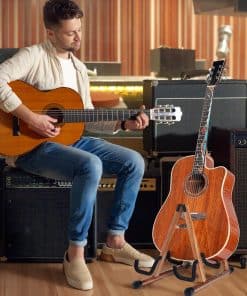 3. Seguro y Confiable: El soporte de guitarra acústica de Musbeat prioriza la seguridad de su instrumento. Cuenta con acolchado grueso y suave en los brazos, respaldo, y todos los puntos de contacto con el acabado de la guitarra, protegiéndola efectivamente de marcas, roces y arañazos. Este soporte de guitarra de madera ajustable es perfecto para exhibir en salas de estar, salones, dormitorios principales, salas de música, estudios y comedores, incluso en conciertos, actuaciones en iglesias y bares.