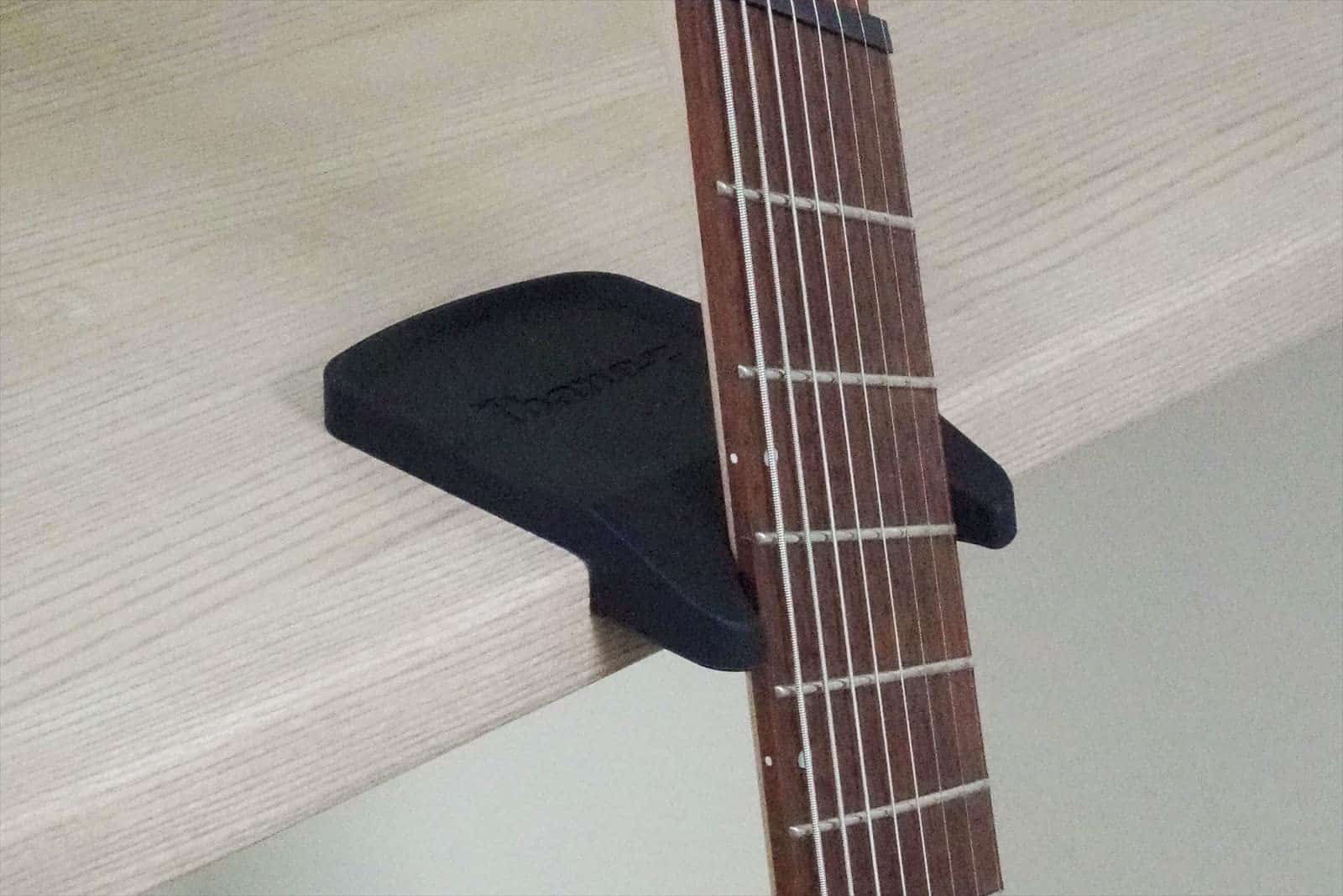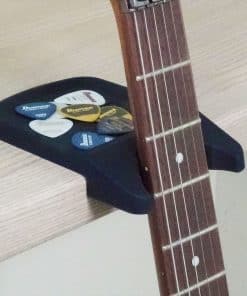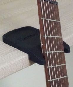Soporte para guitarra IBANEZ para mesas y amplificadores. Este soporte compacto y ligero cuenta con un tamaño de 3.8 x 5.6 x 1.0 pulgadas y un peso de 6.3 oz. Está fabricado con un cuerpo principal de goma de silicona y un material de refuerzo interior de chapa de acero para mayor durabilidad y estabilidad. Ideal para mantener tu guitarra segura y protegida mientras no la estás utilizando.