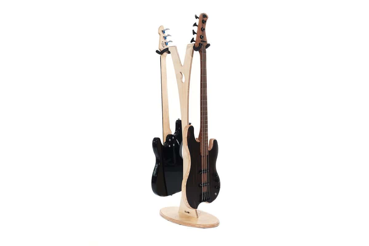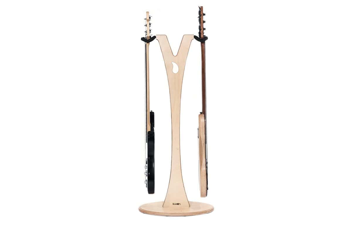 ¿Alguna vez has querido lucir tus dos guitarras favoritas con estilo? ¡Pues ahora puedes con el Soporte para Guitarra Ruach GS-2 DUAL Bajo! Este soporte ha sido diseñado y fabricado a mano en Irlanda del Norte por Ruach Music – creado a partir de madera maciza, viene con un hermoso acabado satinado. Con una separación de 1100 mm (43 ) desde la base hasta el soporte – este soporte es apto para bajos eléctricos de tamaño completo, guitarras acústicas y guitarras eléctricas y es muy fácil de armar con nuestro sencillo montaje de 2 pasos – estarás exhibiendo tu guitarra con orgullo en cuestión de minutos desde que te la entreguen.