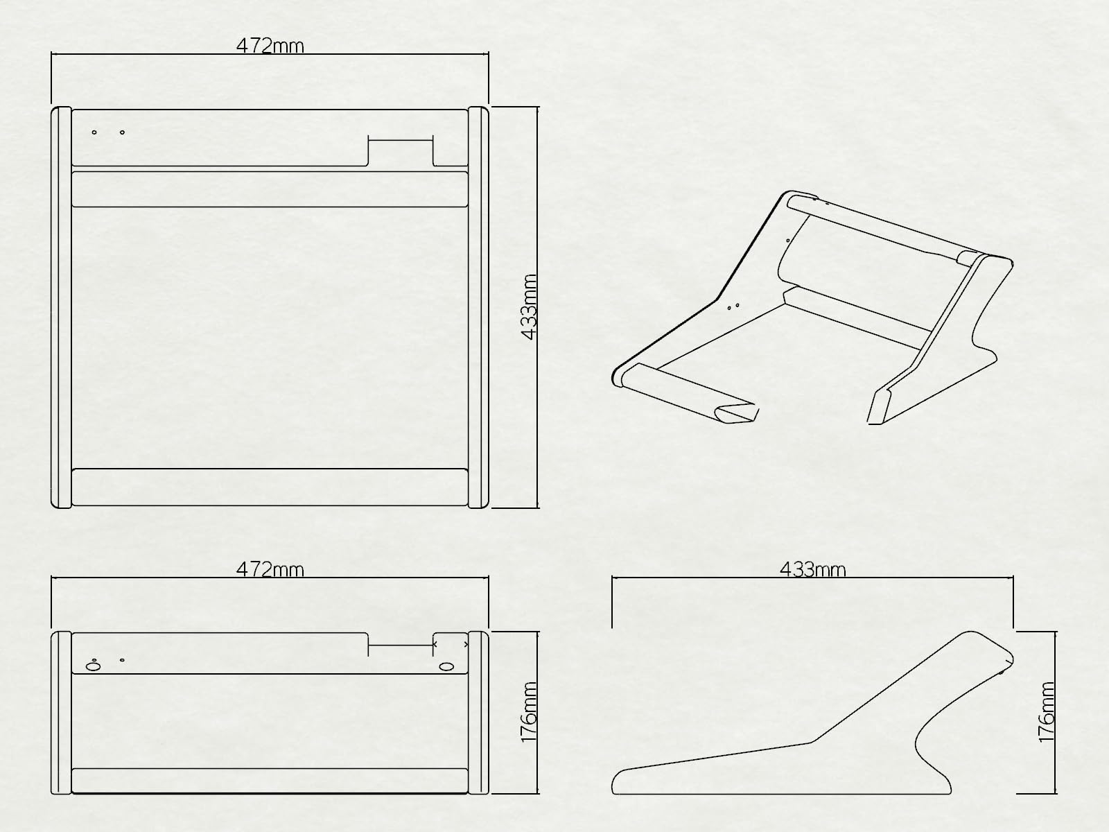 Proporcionamos una gran experiencia que combina el controlador, la Estación de Trabajo de Audio Digital (DAW) y el espacio de trabajo en un solo lugar. Queremos que este equipo cambie por completo tu estado de ánimo laboral. En el mundo del audio moderno, el papel del controlador es impresionante. Ahora, los usuarios pueden beneficiarse de la eficiencia y comodidad del software sin renunciar al método de operación intuitivo del hardware. Sin embargo, varios factores distraen a los usuarios de integrar completamente el controlador en su sistema operativo. Estos pocos factores inconvenientes nos impiden acostumbrarnos al controlador y, como resultado, abandonamos el sistema híbrido sofisticado que imaginamos. Por lo tanto, buscamos el aspecto estructural para abordar esas preocupaciones. La interferencia física entre el teclado y el controlador es bastante incómoda al usar el controlador, y necesitábamos un poco de espacio para que las manos de los usuarios descansaran para operar el controlador cómodamente. Investigamos la altura a la que se minimiza la interferencia del teclado, así como el ancho apropiado y el ángulo del espacio necesario para que descansen tus manos. Luego, consideramos el mejor ángulo de instalación para las operaciones de los dos controladores. Las barras deslizantes, botones y perillas debían ser fácilmente entendidos, y el ángulo del brazo debía ser cómodo. Construimos alrededor de 30 prototipos para probar ángulos e interferencias de altura con varias pantallas e iMacs. Además, los elementos artísticos representan una gran parte del estudio, y el punto de diseño principal es que el estudio debe ser estéticamente hermoso. Los paneles izquierdo y derecho se cortaron en superficies curvas bellamente con una curvatura de radio de 10 mm, y los bordes de los paneles que los conectaban se hicieron con una curvatura de radio de 19 mm; la luz se diseñó para fluir a lo largo de la superficie curva a través de todos los paneles. Esperamos que este equipo haga que tu estudio sea más hermoso y perfecto.