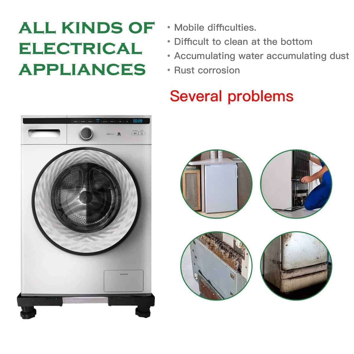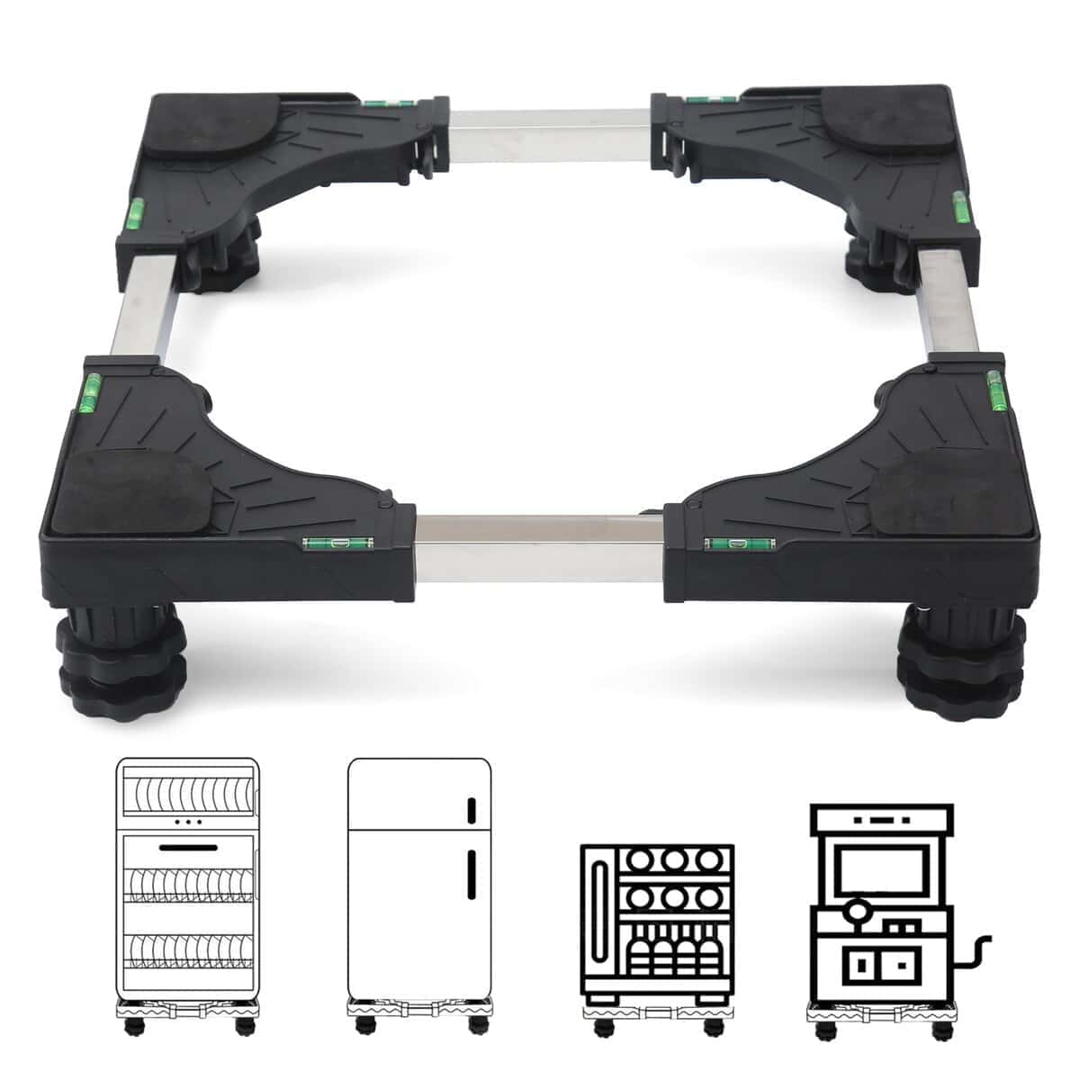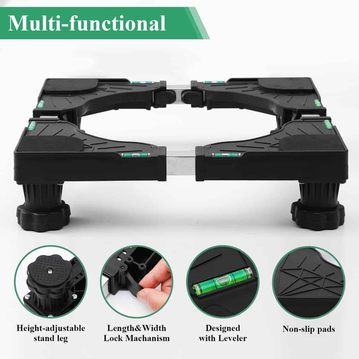 1. Tamaño ajustable: Este soporte para mini nevera se puede ajustar de 16″ a 24″, la altura se puede ajustar de 4 pulgadas a 5.1 pulgadas. Por favor, mida el tamaño de su electrodoméstico para ver si es adecuado. Se puede utilizar como soporte para lavadoras portátiles, soporte para lavadoras y secadoras, soporte para nevera. 2. Capacidad de carga resistente: Este soporte para nevera mini puede soportar hasta 400 libras y se puede utilizar como soporte para lavadoras portátiles, soporte para lavadoras y secadoras, soporte para nevera. 3. Impermeable, a prueba de golpes y silencioso: Este soporte para lavadora está equipado con cuatro amortiguadores de alta calidad, lo que hará que su lavadora y secadora funcionen de manera más estable y silenciosa. El producto está hecho de PVC de alta calidad y acero inoxidable, impermeable y a prueba de óxido. 4. Proteger los electrodomésticos y los zócalos: Este soporte para mini nevera puede elevar sus lavadoras portátiles, lavadoras y secadoras, manteniendo la ventilación y la disipación de calor en la parte inferior de los electrodomésticos, y también protegiendo su piso o alfombra. 5. Fácil instalación: Por favor, lea atentamente las instrucciones de instalación y uso. Solo necesita 10 minutos para completar el ensamblaje. Si tiene algún problema de uso, déjenos un mensaje y lo resolveremos dentro de las 24 horas.