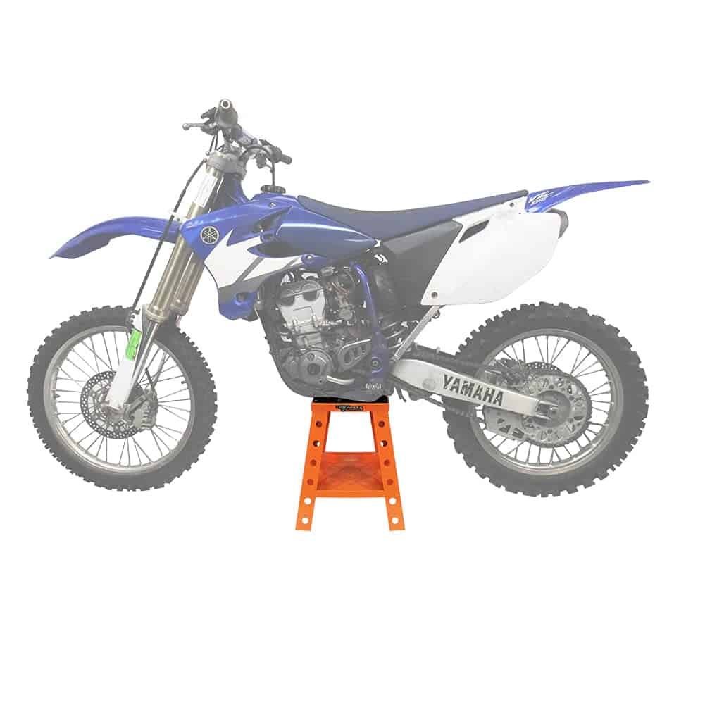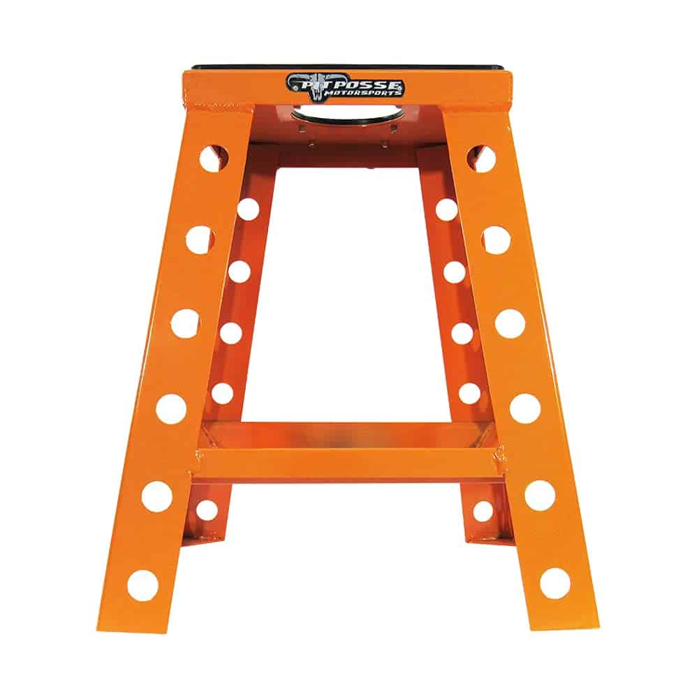 Are you looking for a reliable bike stand? Are you tired of unreliable wobbly bike stands that cost a lot of money? Pit Posse’s universal bike stand is the right choice for you! Sturdy aluminum reinforced construction. Welded tool tray for your convenience. Durable high-quality stand that won’t rust or chip. Support most off-road motorcycles up to 300lbs. Reinforceable top that features a drain hole for quick and easy oil changes. Extra thick oil & gas resistant rubber pad. 17″ tall for easy access and comfort of use. Gussets on legs prevent sinking to the ground when muddy/wet. 5 year warranty backed up by Pit Posse’s 20 Years of excellent service. Your search is complete, our bike stand will allow you to service or store your bike safely without slipping or tilting. ADD TO CART TODAY, RISK-FREE! ENJOY A 5 YEAR MANUFACTURE WARRANTY!