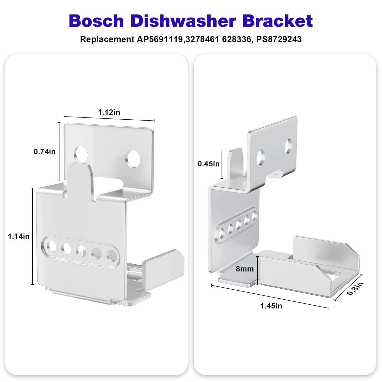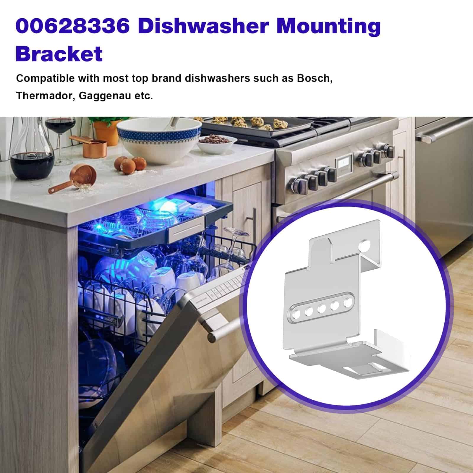 Soporte para panel frontal de lavavajillas 00628336 para la serie Bosch AP5691119, 3278461, 628336, PS8729243. Este soporte para lavavajillas es compatible con la mayoría de las principales marcas de lavavajillas como Bosch, Thermador, Gaggenau, etc. El soporte para lavavajillas 00628336 de Bosch es un reemplazo de alta calidad para los modelos AP5691119, 3278461, 628336, PS8729243. Este soporte puede solucionar problemas en la cocina al fijar el lavavajillas y asegurar su estabilidad durante el funcionamiento. Fabricado en acero galvanizado de alta calidad, este soporte para lavavajillas Bosch es resistente y duradero, garantizando un uso a largo plazo. Con una instalación sencilla, este soporte es una solución práctica para mantener tu lavavajillas funcionando de manera óptima.