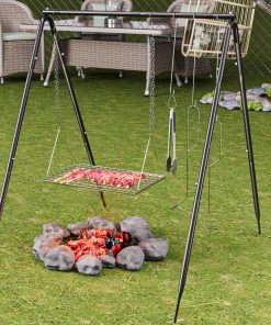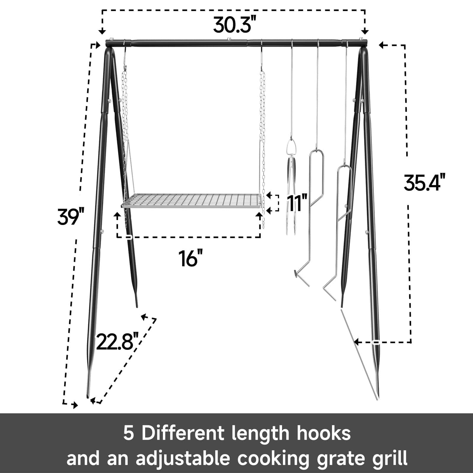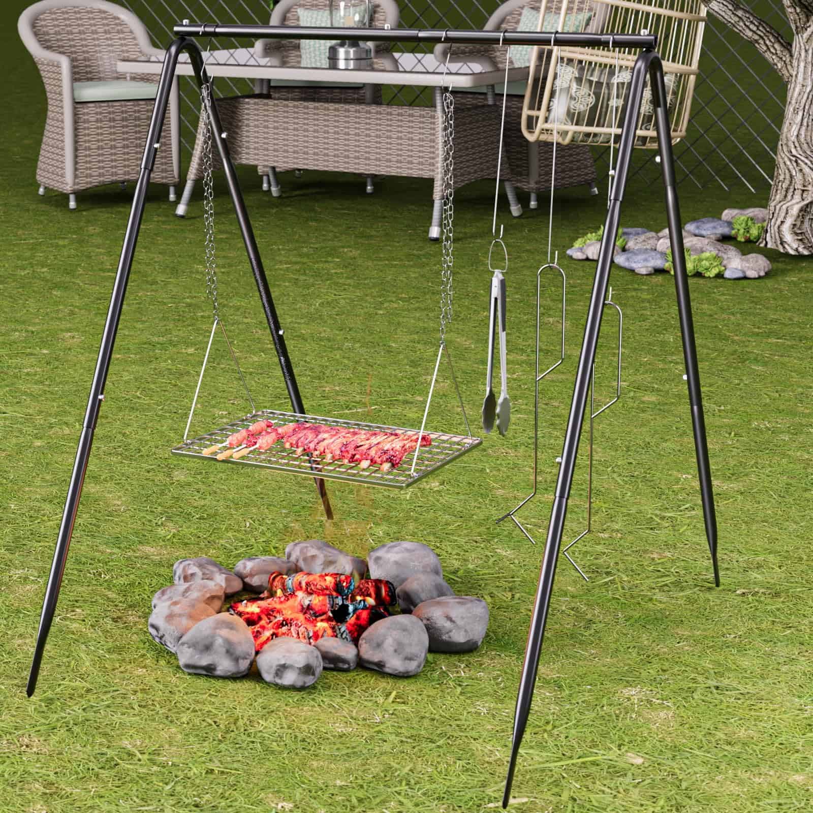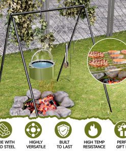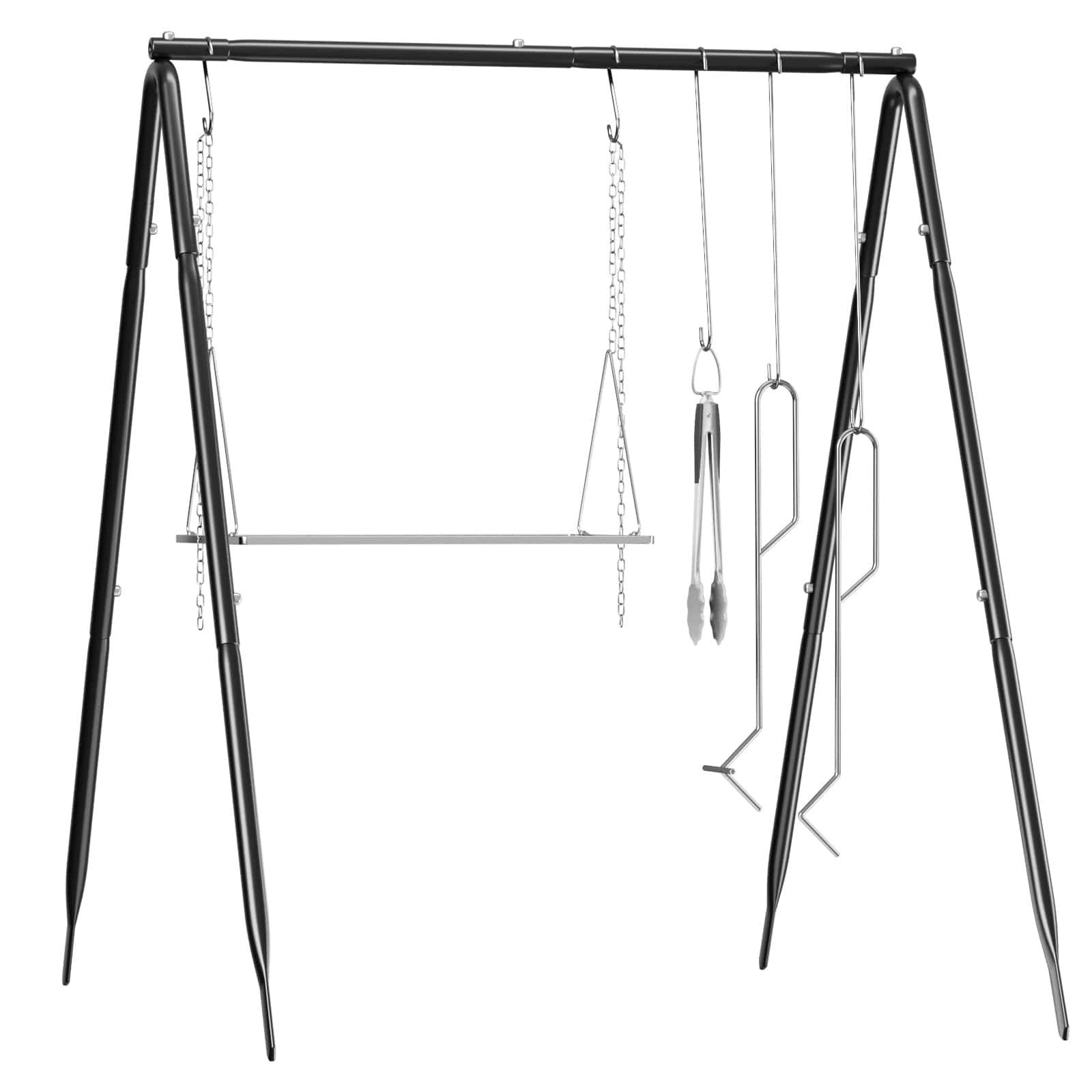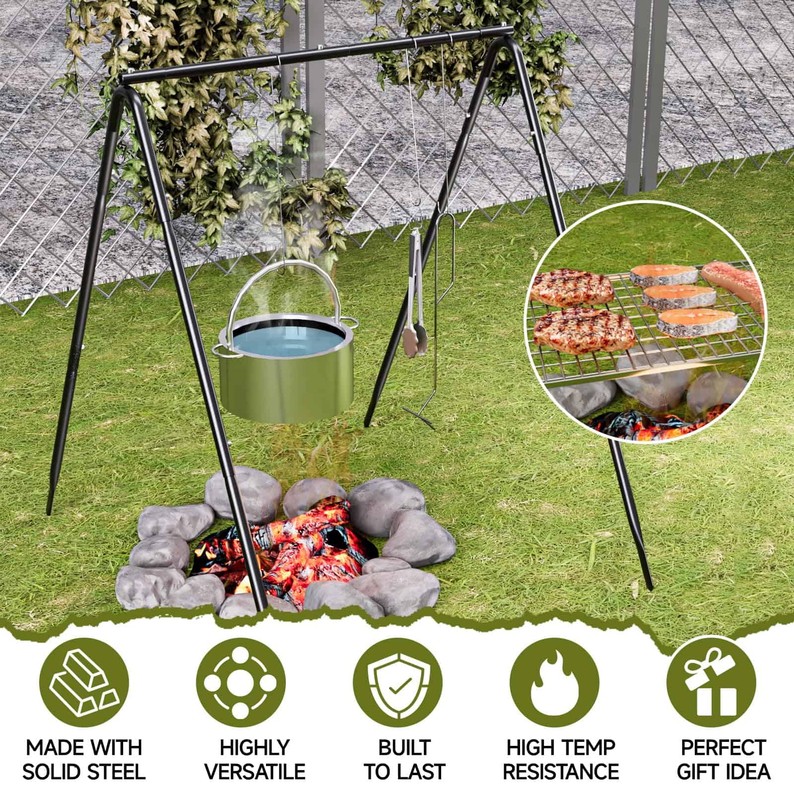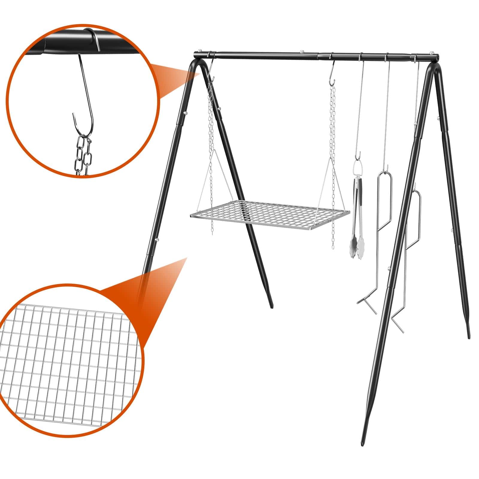 Además de ser ideal para asar a la parrilla, este soporte de cocina de parrilla oscilante también se puede utilizar para cocinar con utensilios de cocina al aire libre, sartenes y ollas sobre una llama abierta. Es versátil y conveniente para su uso al aire libre.