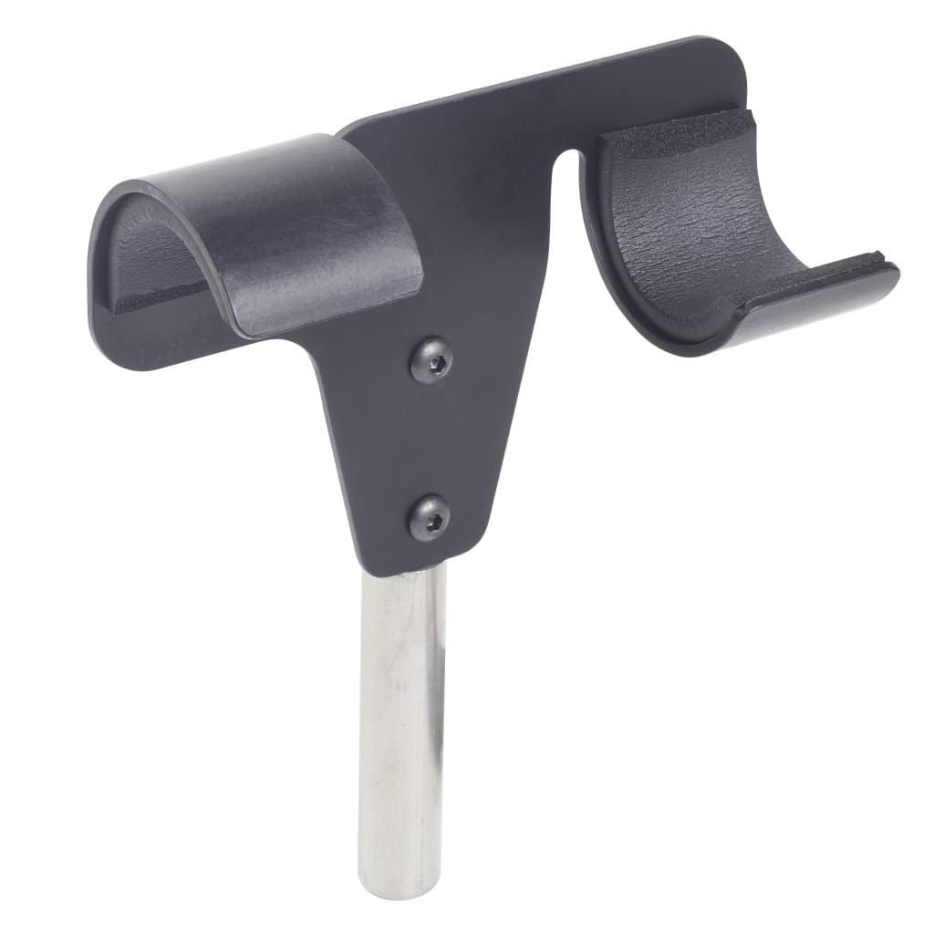 1. Soportes anchos para sostener de forma segura la pértiga. 2. Soportes acolchados para proteger la pértiga. 3. Diseño fuerte y compacto. 4. Cuerpo principal de aluminio anodizado. 5. Pasador de acero inoxidable.