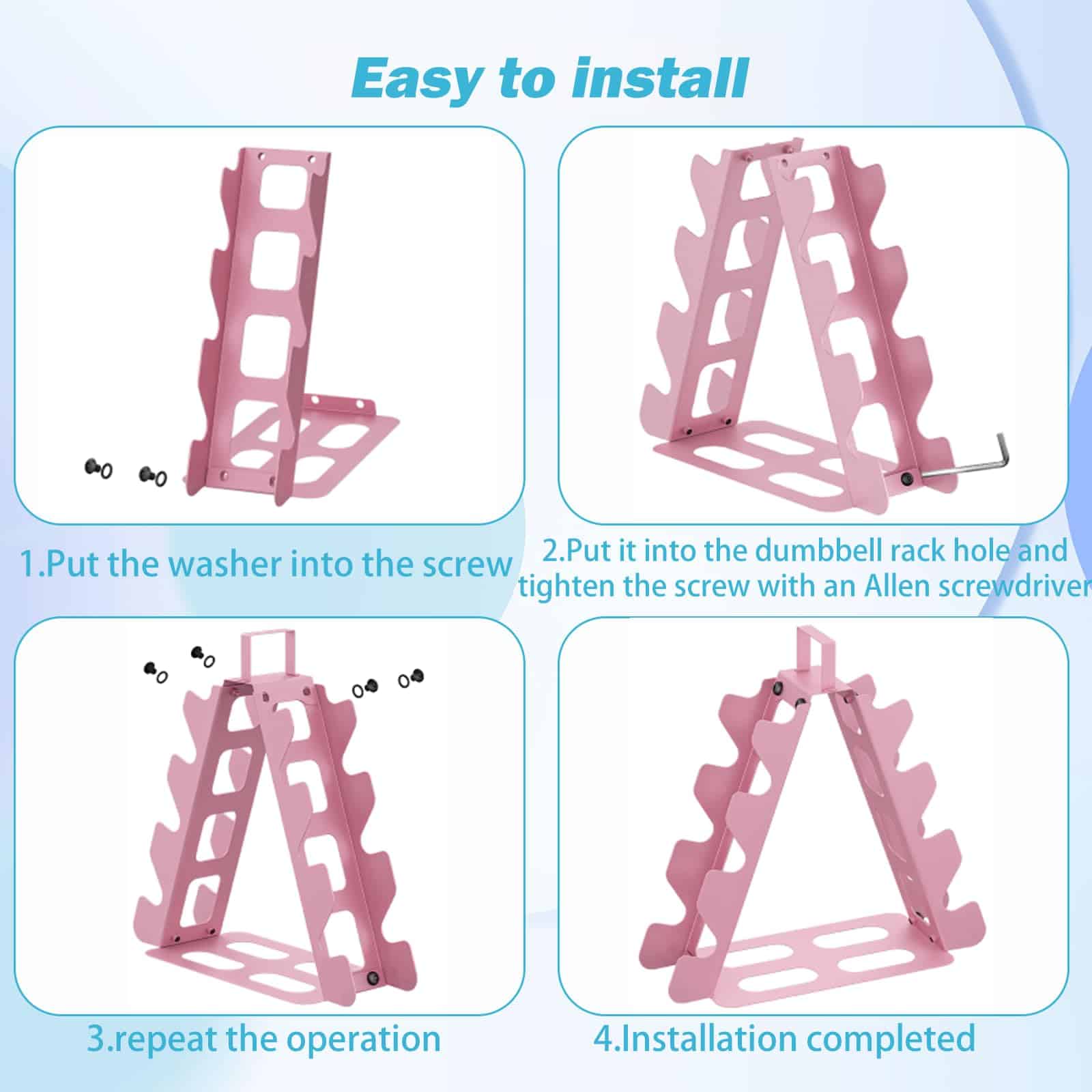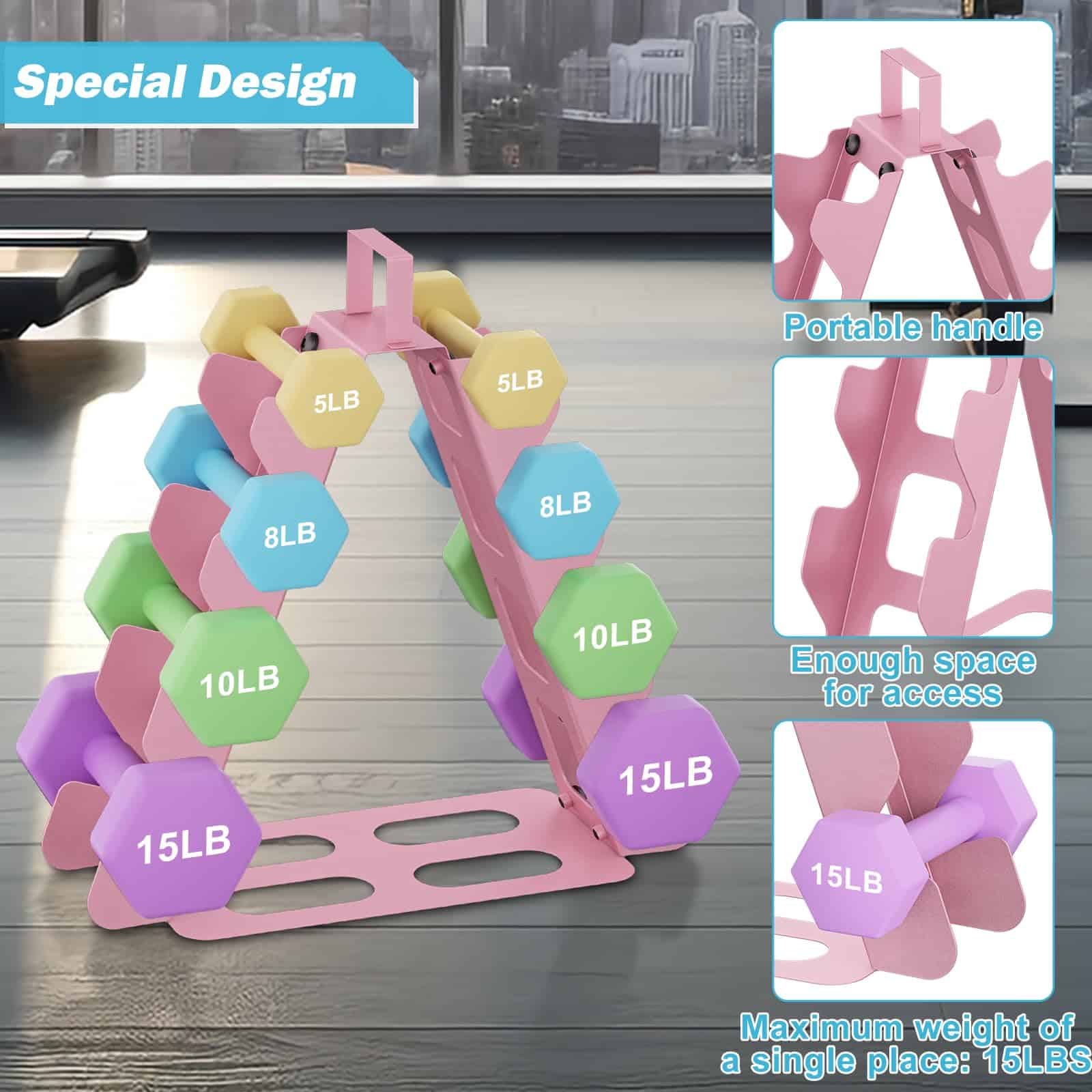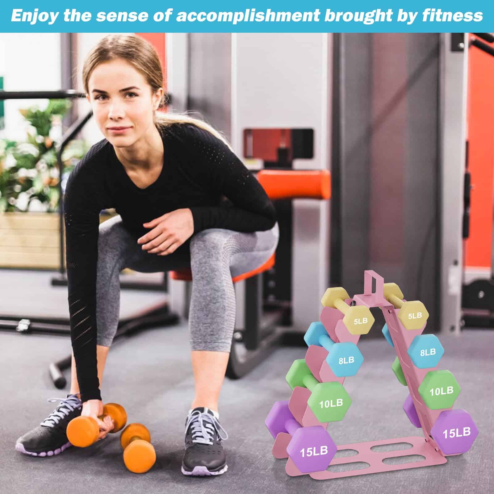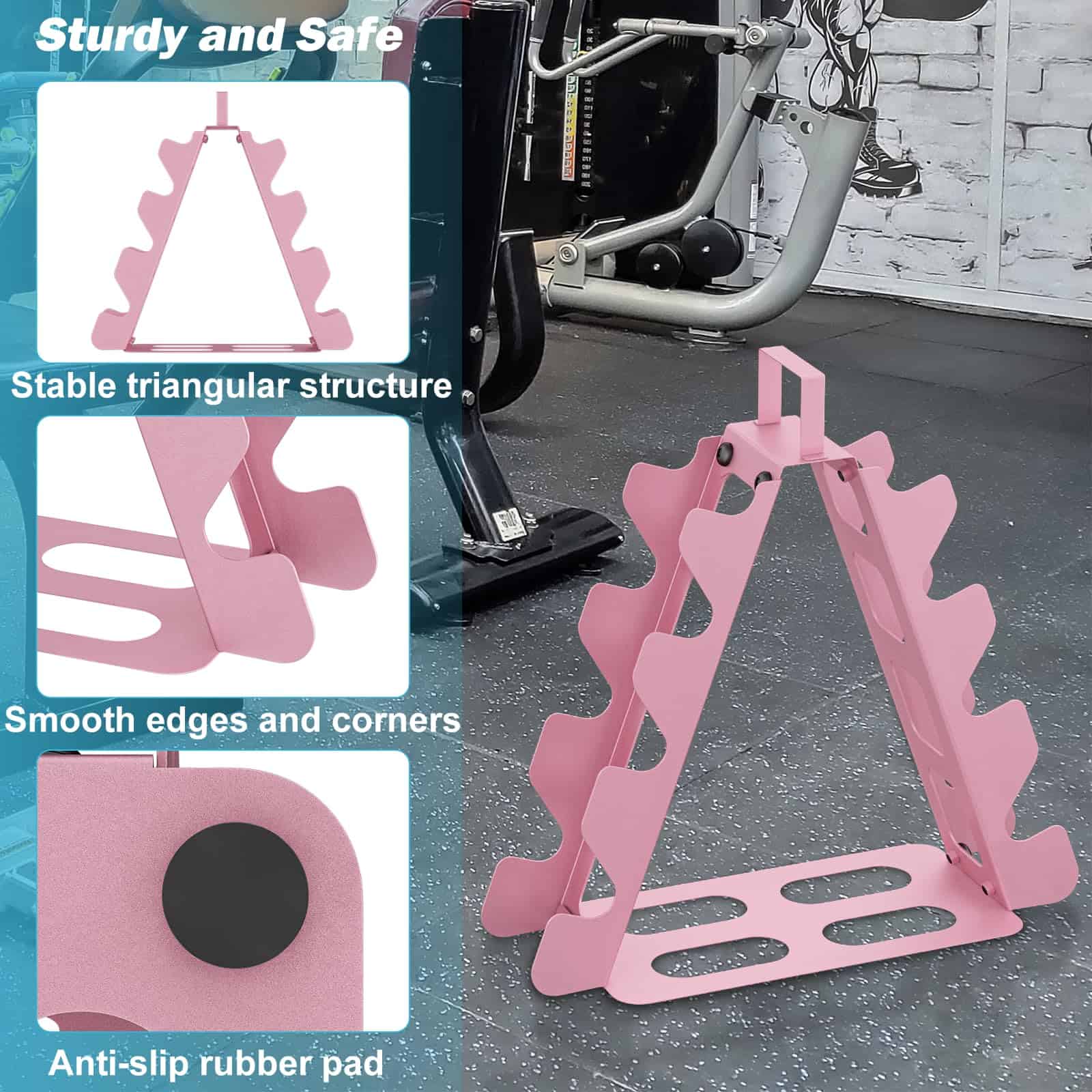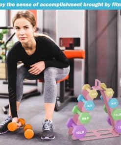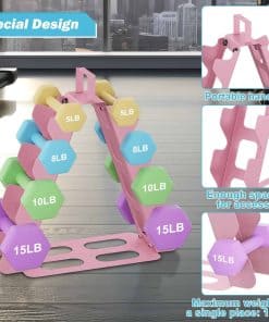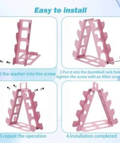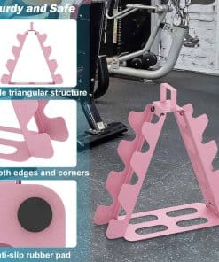 El soporte para pesas de 4 niveles es la solución perfecta para mantener organizadas y accesibles sus pesas en su gimnasio en casa. Con un diseño compacto y resistente, este soporte para pesas puede contener pesas de 5 a 15 libras de forma segura y con facilidad de acceso. Está fabricado con material de acero de aleación de alta calidad que garantiza durabilidad y resistencia. El diseño en forma de A asegura estabilidad y puede soportar hasta 180 libras de peso. La base de goma antideslizante evita que las pesas se muevan o se caigan. Este soporte para pesas es fácil de montar y transportar, con un asa superior que permite moverlo fácilmente a cualquier lugar de su hogar. Mantenga sus pesas ordenadas y listas para usar con este práctico y eficiente soporte para pesas de 4 niveles.
