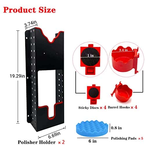Este soporte para pulidora te brinda un lugar en tu pulidora, proporciona espacio para todo tipo de pulidoras. Adecuado para amoladora angular, máquina de corte, pulidor, sierra ingletadora, pulidora, máquina enceradora, etc. Estos pads de pulido son ampliamente utilizados para el pulido detallado de automóviles de todo tipo de pinturas de capas, encerado, pulido y sellado de vidriado para limpiar y mejorar su brillo. Pulen eficientemente recubrimientos de óxido automotriz y rayones. Características – Material: Acero. Esponja. – Tamaño: soporte para pulidora: 49 x 17 x 9.5 cm / 19.3 x 6.7 x 3.7 pulgadas, pads de pulido: 6 pulgadas – Este soporte para pulidora es adecuado para amoladora angular, máquina de corte, pulidor, sierra ingletadora, pulidora, máquina enceradora, etc. – Los pads de pulido se utilizan para todo tipo de pinturas de capas, encerado, pulido y sellado de vidriado, para limpiar y mejorar su brillo. Protegen la superficie del auto de arañazos durante el pulido. – Se pueden usar en pulidora eléctrica como pulidora de acción dual, pulidora rotativa, pulidora de aire, lijadora orbital aleatoria y otras pulidoras. – Diseño de espuma en forma de ondas: Estos pads de pulido con diseño único son altamente adaptables y minimizan la retención de calor al entrar en contacto eficazmente con la superficie. – La almohadilla con respaldo adhesivo hace que sea más fácil y conveniente cambiar la almohadilla. Adhesivo fuerte, se puede desmontar repetidamente. Incluye 5 x Pads de Pulido de Coches 2 x Soporte para Pulidoras 4 x Ganchos de Barril 4 x Discos Adhesivos