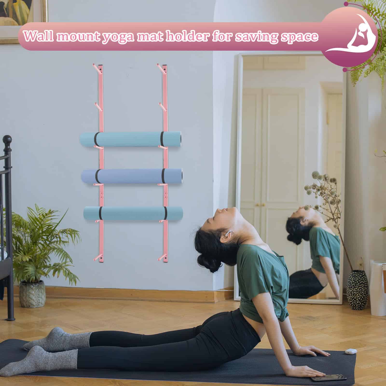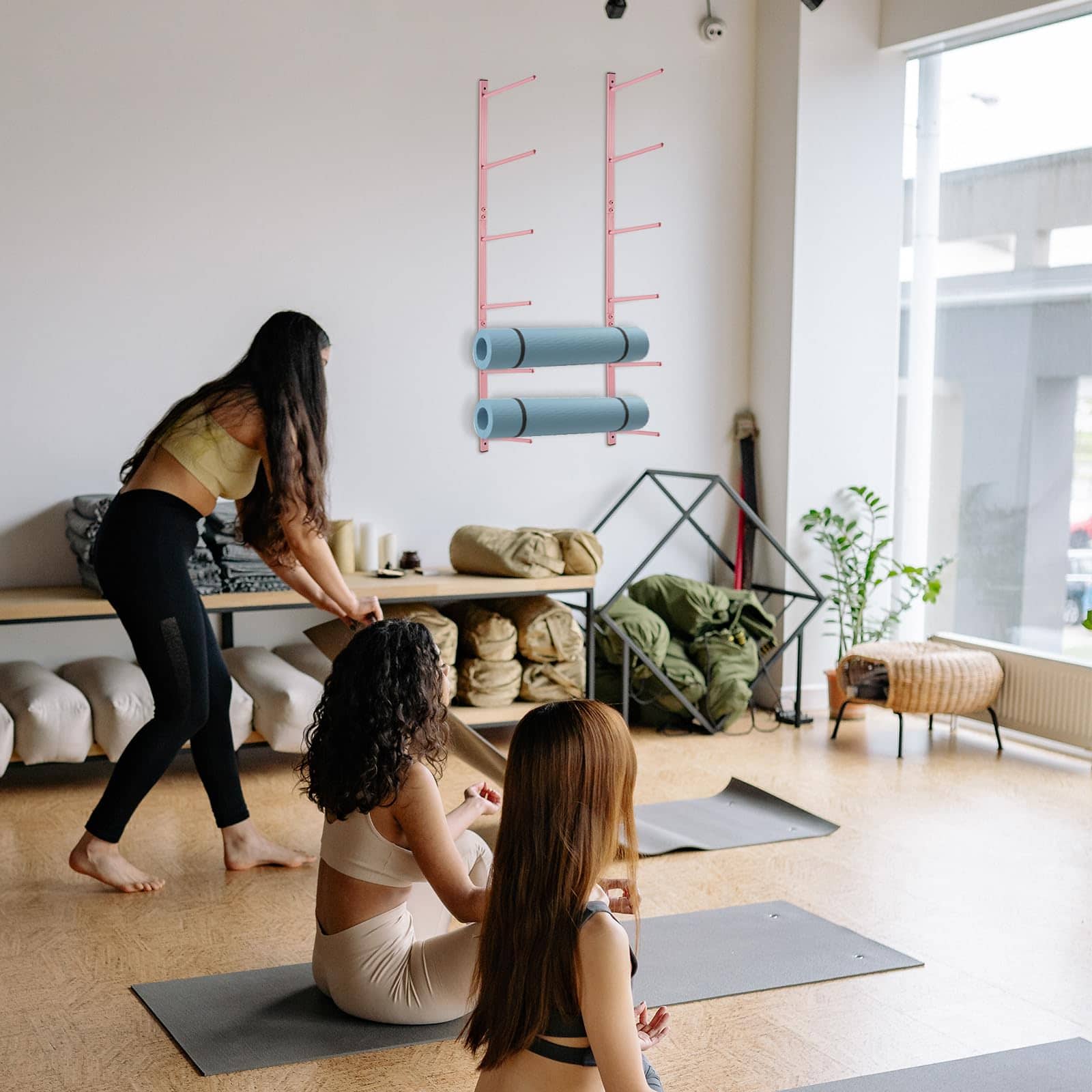 Estante colgante para tapetes de yoga Retyion montado en la pared para organizar y almacenar tapetes de yoga, rodillos de espuma y otros artículos deportivos de forma ordenada. Este versátil estante de almacenamiento de tapetes de yoga te permite liberar espacio en el suelo y mantener tu hogar o gimnasio limpio y ordenado. Con una construcción sólida de alta calidad, este estante es resistente y duradero. Fácil de instalar, ajustable para adaptarse a diferentes tamaños de tapetes de yoga. Aprovecha al máximo tu espacio de almacenamiento con este práctico organizador de tapetes de yoga.