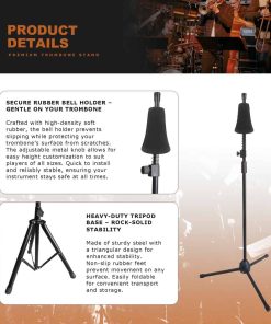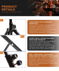 Este soporte retráctil para trombón está diseñado específicamente para trombones, haciéndolo ideal para diversos entornos como prácticas, actuaciones o almacenamiento. Fabricado en acero de alta calidad, el soporte ofrece una estabilidad confiable, con altura ajustable para adaptarse a trombones de diferentes tamaños. Su base de goma antideslizante y diseño de gancho acolchado protegen eficazmente el instrumento de arañazos y daños. Cuando se pliega, el soporte es compacto y fácil de transportar, convirtiéndolo en un accesorio imprescindible para los trombonistas.