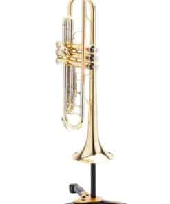 El soporte de Trompeta/Corneta HERCULES DS510BB cuenta con un pasador de terciopelo para el instrumento y patas giratorias sólidas para una máxima estabilidad.