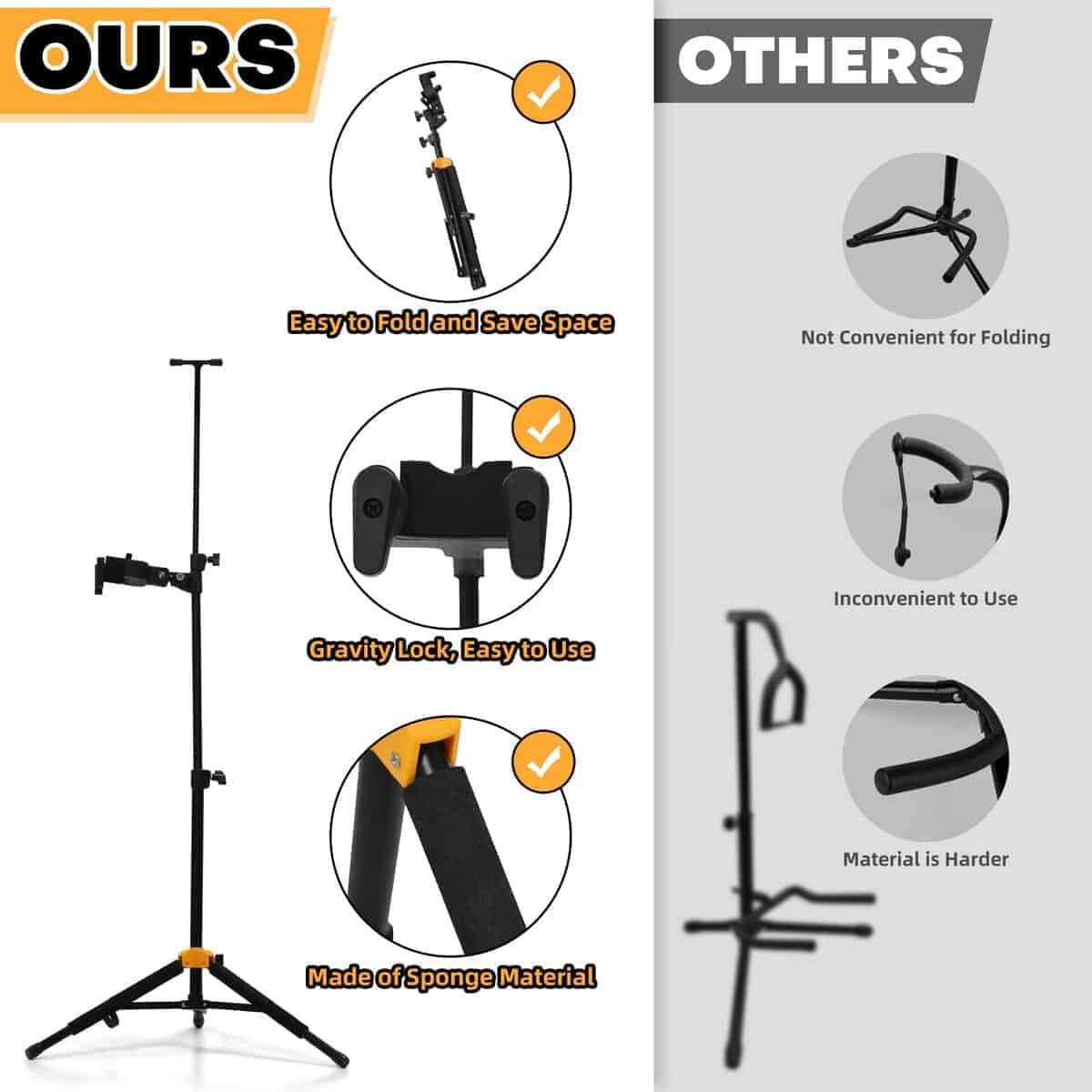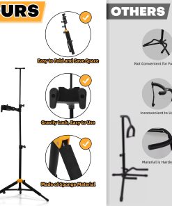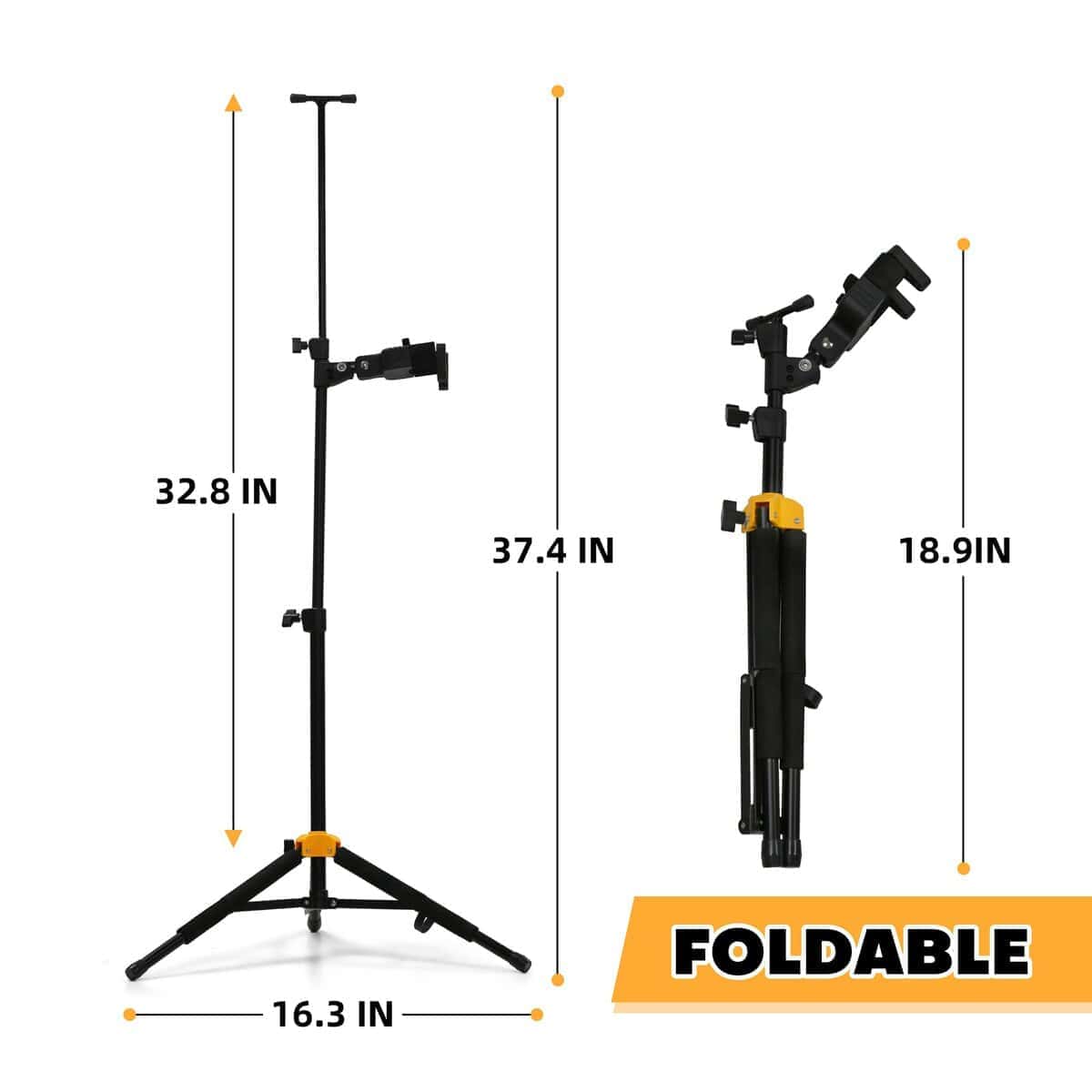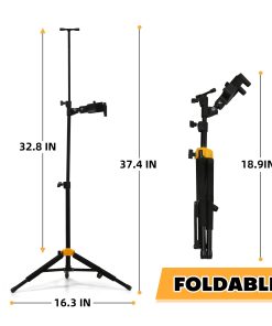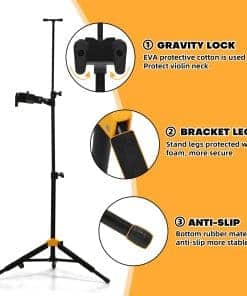 1. Bloqueo por Gravedad Automático: El cabezal de nuestro soporte para violín adopta el diseño de bloqueo por gravedad automático. Después de colocar el violín, el cabezal se bloqueará automáticamente y asegurará el violín. Es conveniente y rápido sin ajuste manual. La base del soporte para violín con soporte para arco adopta un diseño triangular, lo que proporciona una mayor estabilidad. 2. Protección Integral: La parte donde el soporte para violín contacta con el mástil del violín está hecha de espuma suave y cómoda para asegurar que su violín no se raye. La parte donde las patas del soporte para violín están en contacto con el violín tiene espuma cómoda para protegerlo. El instrumento proporciona protección integral y está equipado con almohadillas de goma antideslizantes, lo que aumenta la estabilidad y seguridad del suelo del soporte de guitarra. 3. Tamaño Ajustable: El soporte para violín tiene tres perillas ajustables en todo el cuerpo para ajustar la altura según sus propias necesidades. Puede soportar la colocación de un arco de hasta 37.8IN, y la distancia máxima desde el suelo es de 37.4IN; hay un área en forma de U debajo para el soporte de ukulele. El arco no se balancea de izquierda a derecha cuando está en reposo; los accesorios para violín solo tienen 18.9IN después de plegarse, lo que lo hace muy conveniente de llevar. 4. Material de Alta Calidad: El soporte para violín con soporte para arco está hecho de materiales compuestos de alta calidad, que son impermeables, resistentes a la corrosión y duraderos. Las partes en contacto con el soporte para violín están envueltas en espuma suave, proporcionando a su violín protección integral. 5. Elección de Regalo Ideal: Nuestro soporte para ukulele puede mostrar su ukulele y violín en el estudio de música, la sala de estar y la tienda de pianos; puede elegir este soporte para violín con soporte para arco como regalo para aquellos que poseen ukuleles y violines u otros instrumentos musicales pequeños como regalos de Navidad/Año Nuevo/Día de Acción de Gracias para amigos o familiares.