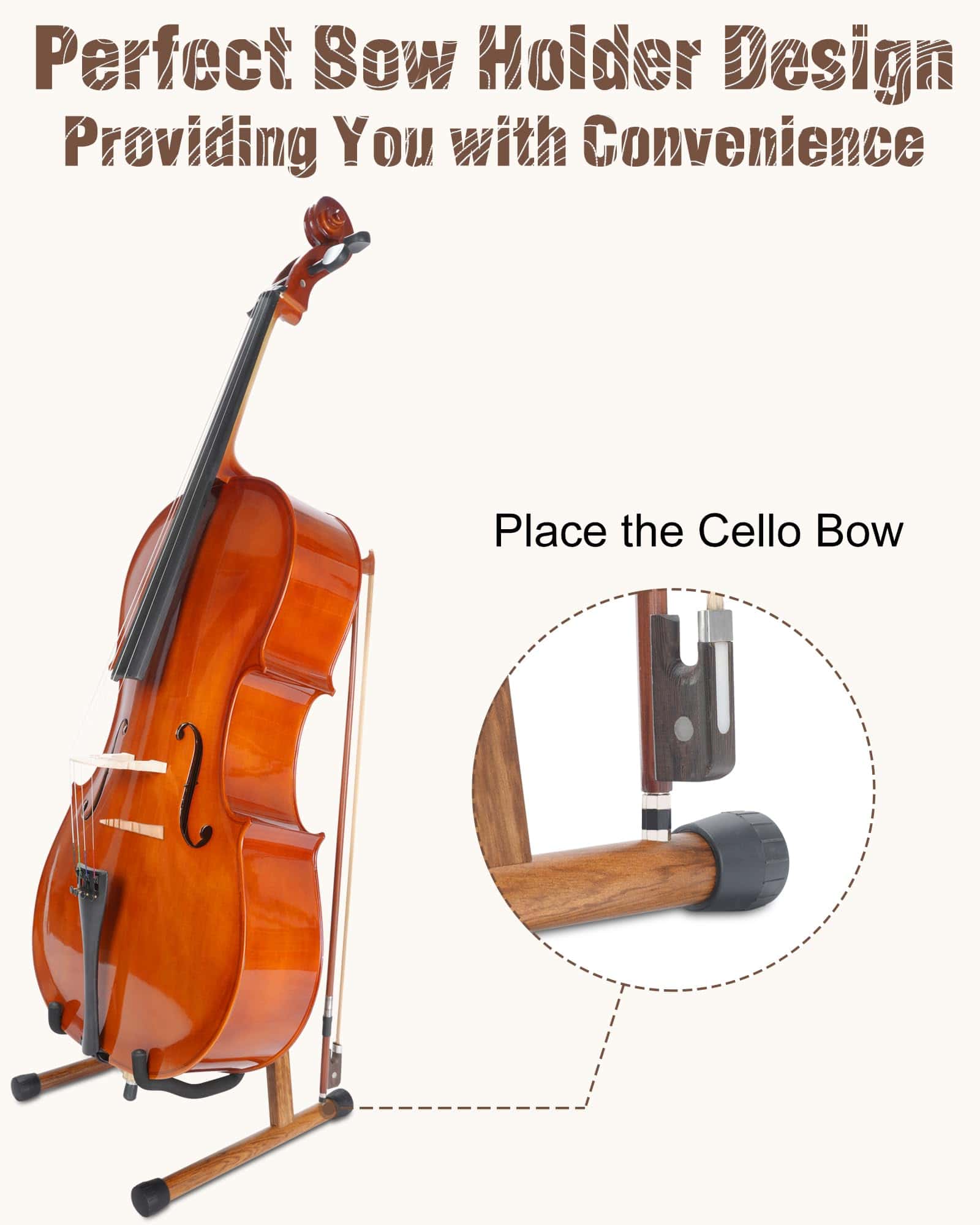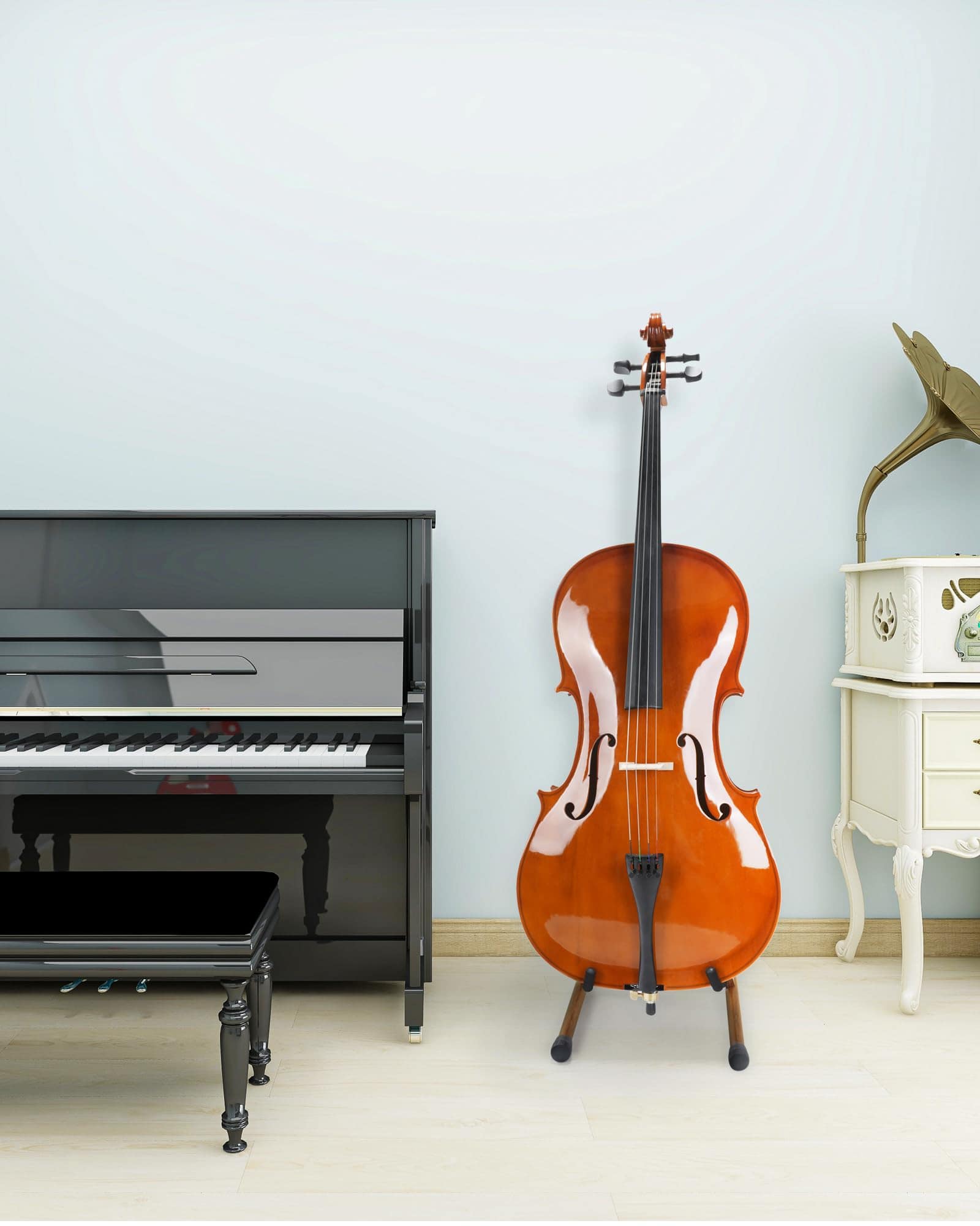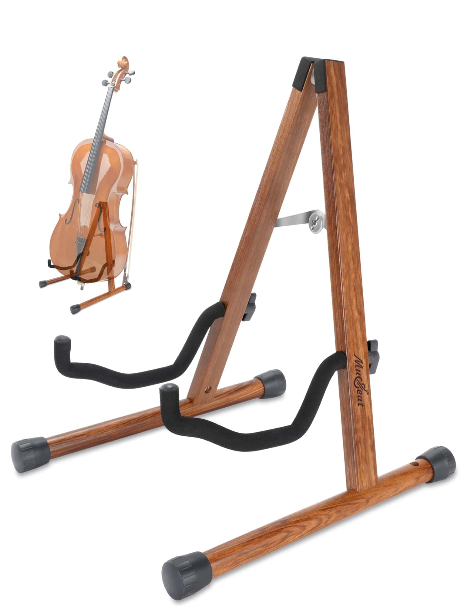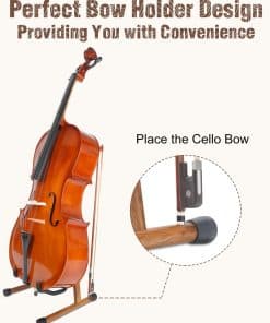 1. Más Estabilidad: Si te preocupa que tu violonchelo se caiga por un estornudo o una brisa, es hora de considerar el resistente soporte para violonchelo de Musbeat. A diferencia de otros soportes de metal ligero, el estable soporte para violonchelo de Musbeat cuenta con una barra de apoyo más larga y pesada, ofreciendo una huella más amplia y una estabilidad mejorada para tu instrumento. Con este sólido soporte de violonchelo de madera, puedes colocar tu violonchelo con confianza sin preocuparte de que se caiga.