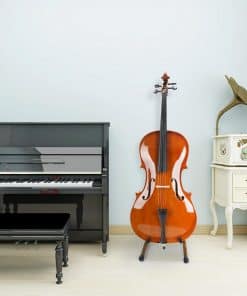 3. Estéticamente Elegante: ¿Cansado del típico soporte para instrumentos metálico negro El soporte para violonchelo de suelo está hecho de madera maciza, mostrando un rico y natural grano de madera que irradia una estética sencilla y elegante. Este soporte de madera para violonchelo llamará la atención de cualquier visitante en tu hogar, provocando una respuesta de «¡Guau, qué bonito!». Las líneas bien elaboradas y pulidas de este soporte para violonchelo le dan el aspecto de una fina pieza de mobiliario, transformando tu querido violonchelo en una obra de arte decorativa también.