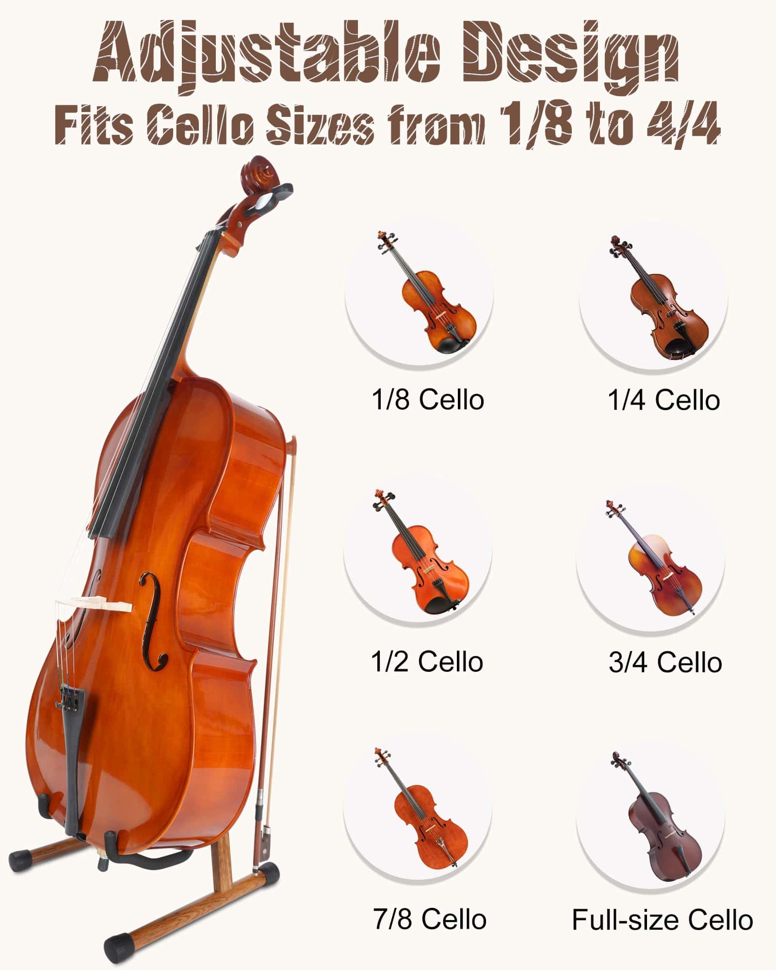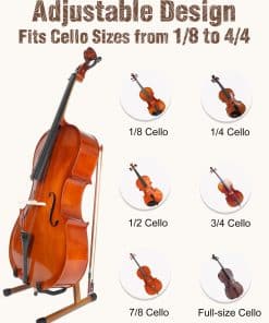 5. Se Adapta a Tamaños de Violonchelo de 1/8 a 4/4: El compacto soporte para violonchelo de Musbeat ofrece un amplio espacio para acomodar la mayoría de los tamaños de violonchelo, incluyendo 1/8, 1/4, 1/2, 3/4, 7/8 y violonchelos de tamaño completo de 4/4 (Nota: La altura del puntal final del violonchelo no está incluida en esta medida). Ya seas un miembro de una orquesta sinfónica, un amateur, un principiante o un joven músico, este soporte de violonchelo decorativo ofrece un gran lugar de exhibición y descanso para los violonchelistas de todas las edades y niveles de habilidad. Merece la pena mencionar que también se adapta a guitarra, viola, violín, banjo, mandolina, ukelele y bajo.