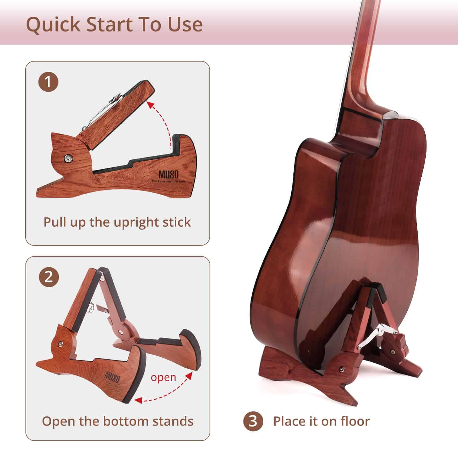 Soporte plegable para guitarra MUSO, madera natural, forma