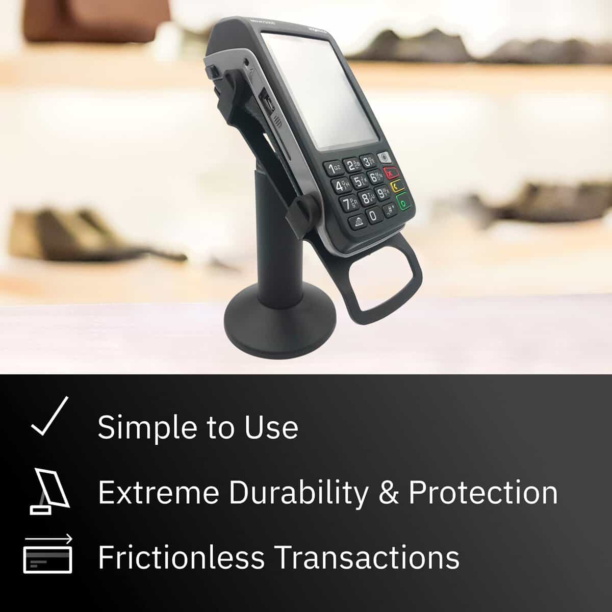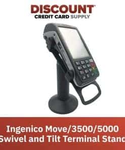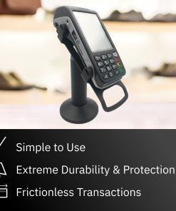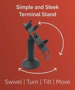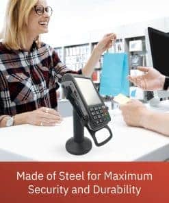 El soporte terminal giratorio e inclinable para Ingenico Move/3500/5000 es un soporte para terminal POS fabricado en acero resistente con acabado en polvo; diseñado para terminales de pago Ingenico Move/3500/5000 para hacer compras con tarjeta en tienda más estables y seguras. Esencial para mejorar la experiencia del cliente y mejorar las transacciones de pago; el soporte para terminal POS puede inclinarse hasta 60° y girar un total de 190°, lo que facilita el movimiento del dispositivo del cliente al comerciante; diseñado para levantar el dispositivo y acercar el terminal al cliente. El soporte permite interacciones sin problemas con el cliente con menos peligro de daño al equipo; prolonga la vida útil de su dispositivo levantándolo del mostrador y asegurándolo en un soporte giratorio e inclinable; actualizable en el campo con un simple intercambio de placa superior. Protege y conserva su terminal de pago; la cubierta del soporte oculta y protege los cables, y el soporte mantiene el terminal seguro para minimizar las posibilidades de daño o robo; el duradero soporte mantiene su dispositivo en su lugar para reducir el riesgo de dejar caer el dispositivo. El soporte giratorio e inclinable se suministra totalmente ensamblado con dos métodos de instalación sencillos; incluye tornillos y una almohadilla adhesiva para dos opciones de fijación del soporte; terminal no incluido; compatible con terminales Ingenico Move/3500/5000; el pie mide 7″ de altura.