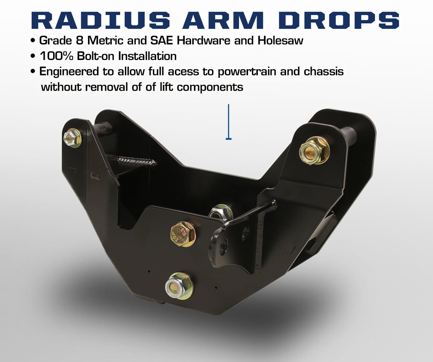 Debido a su diseño único, el chasis del vehículo y el tren motriz pueden ser reparados o reemplazados sin quitar los Soportes de Brazo de Radio. Construidos con acero laminado en frío de 1/4″ y formados por CNC, estos componentes de precisión rotan su eje de regreso a la configuración OEM, lo que coloca sus ángulos de soporte de resorte inferiores donde fueron diseñados intencionalmente; esto también alivia el pandeo del resorte que se encuentra al elevar el frente y no abordar el problema del pandeo del resorte, algo que nunca se abordará realmente con un enfoque de «solo resorte». Los Soportes de Brazo de Radio Carli para camiones RAM 2013+ mantendrán su inversión conduciendo como el día en que salió de la sala de exposición. Se adapta a camiones Ram 2500 4×4 2014-2018 y camiones Ram 3500 4×4 2013-2018.
