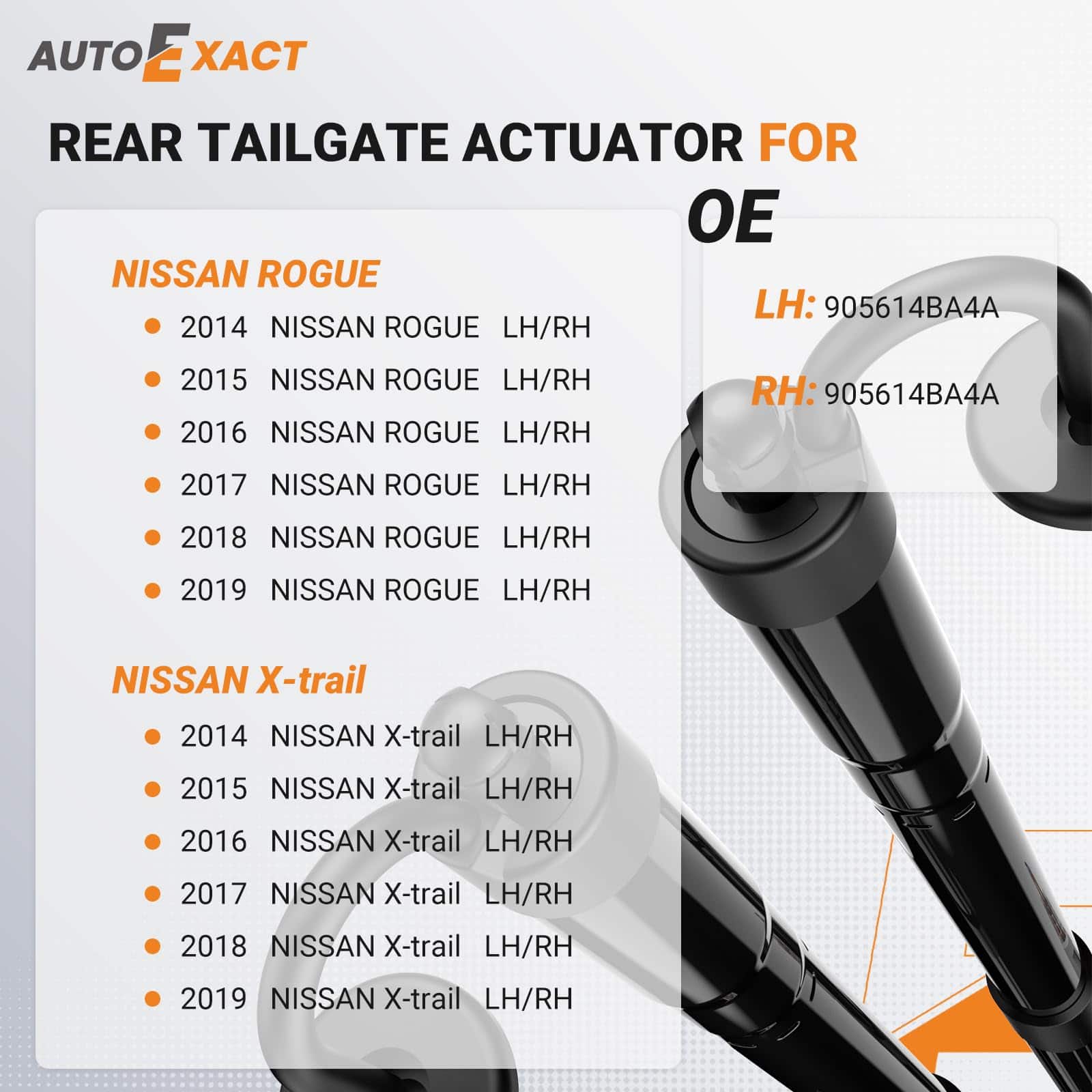 Soportes de Elevación Eléctrica de la Puerta Trasera del Lado Izquierdo y Derecho Compatible con Nissan Rogue 2014-2019. Reemplaza 905614BA4A 90561-4BA3A 90561-4BA1A. Instalación rápida y sencilla que automáticamente abre y cierra el maletero, sin necesidad de levantar o bajar manualmente la puerta del maletero. Fabricados con tecnología avanzada para un funcionamiento suave, reducción de vibraciones, durabilidad, resistencia a la corrosión y al desgaste, así como un rendimiento general excelente. Garantía de un año y servicio postventa profesional para garantizar la satisfacción del cliente.