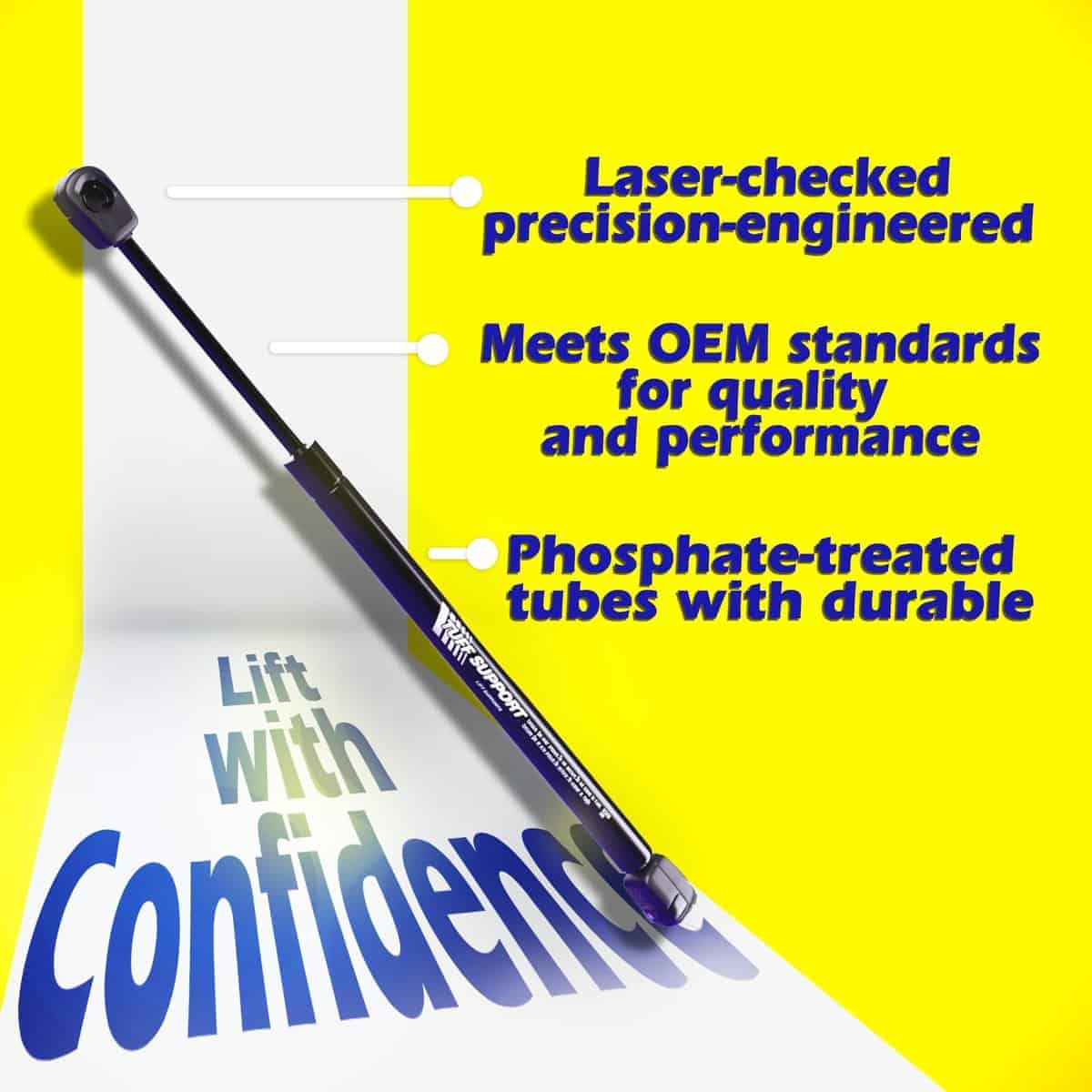 Soportes de elevación Tuff Support 2 piezas (set) diseñados para adaptarse al portón trasero de Nissan Juke fabricados entre los años 2011 y 2016. Con una Longitud Extendida de 25.51 pulgadas y una Longitud Comprimida de 14.37 pulgadas, estos soportes de elevación cuentan con empaque original de Tuff Support y vienen con una Garantía Limitada de por Vida para mayor tranquilidad. Las instrucciones de instalación están disponibles para garantizar un proceso fácil y seguro en todo momento.