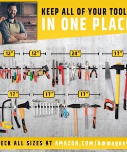 1. IMANES DE EXTRA FUERZA: Te presentamos los NUEVOS soportes magnéticos de herramientas de 12″ mejorados (paquete de 4 de 48″ en total), ahora con IMANES DE ALTA RESISTENCIA que nunca perderán su fuerza magnética. Esta actualización te ofrece barras magnéticas de herramientas de alta calidad que sostienen cualquier juego de herramientas de forma segura y al alcance. Nuestros imanes seleccionados tienen una fuerza magnética uniformemente distribuida en toda la barra, lo que te permite utilizar los 48″ de longitud de forma segura.