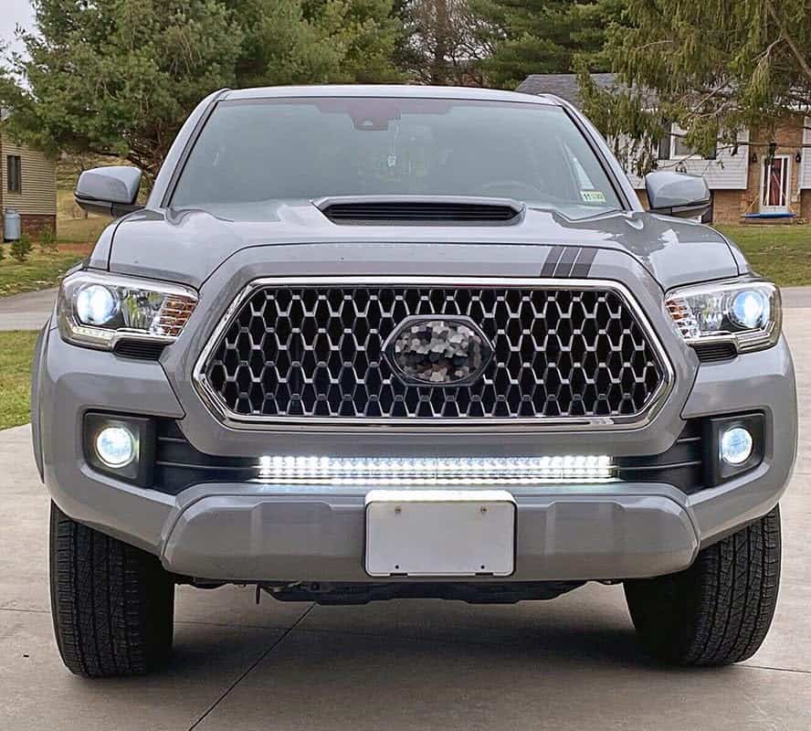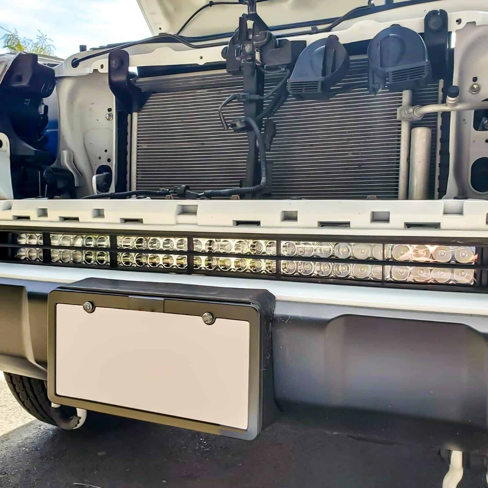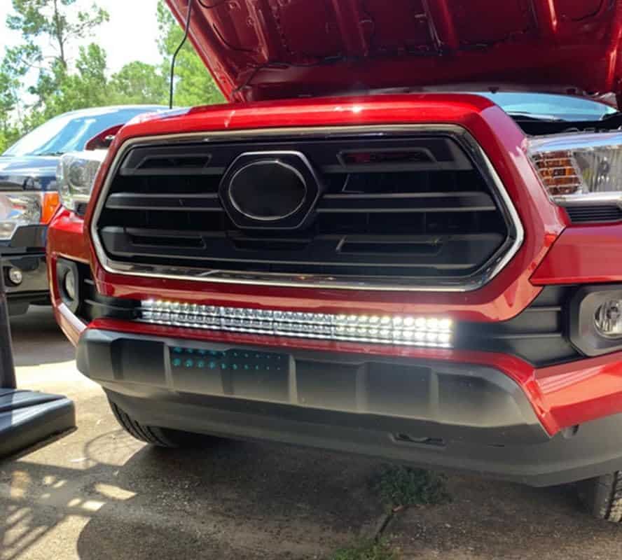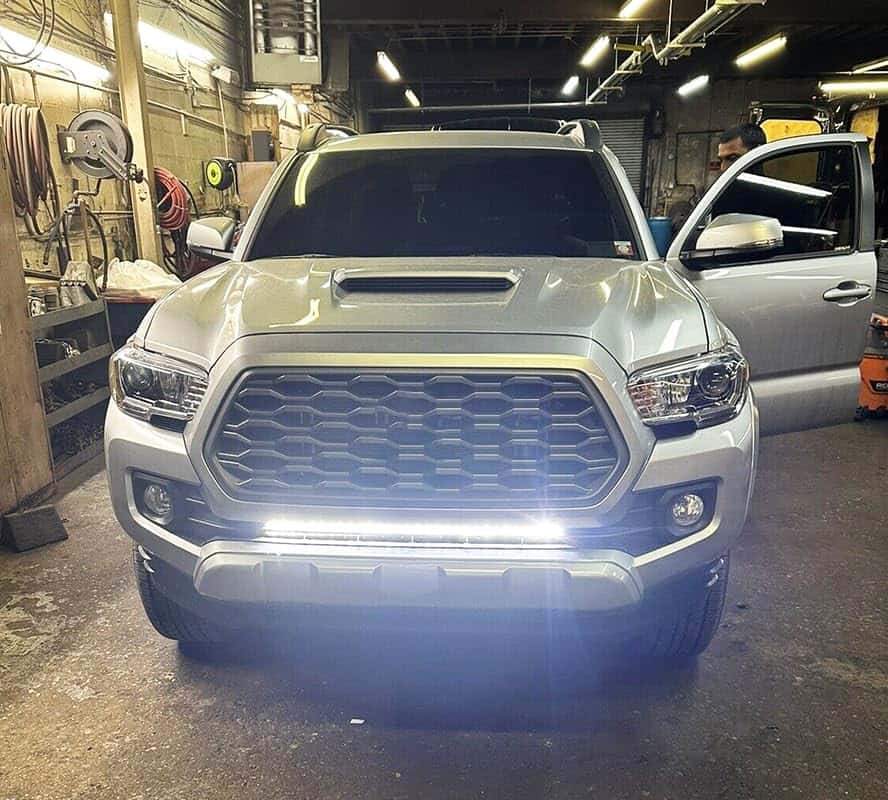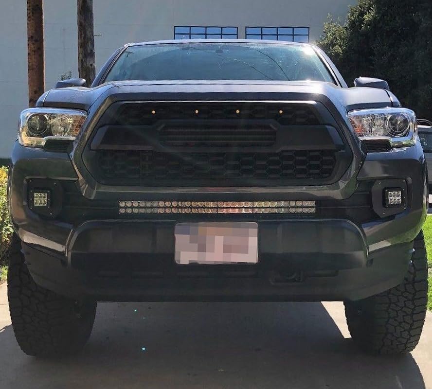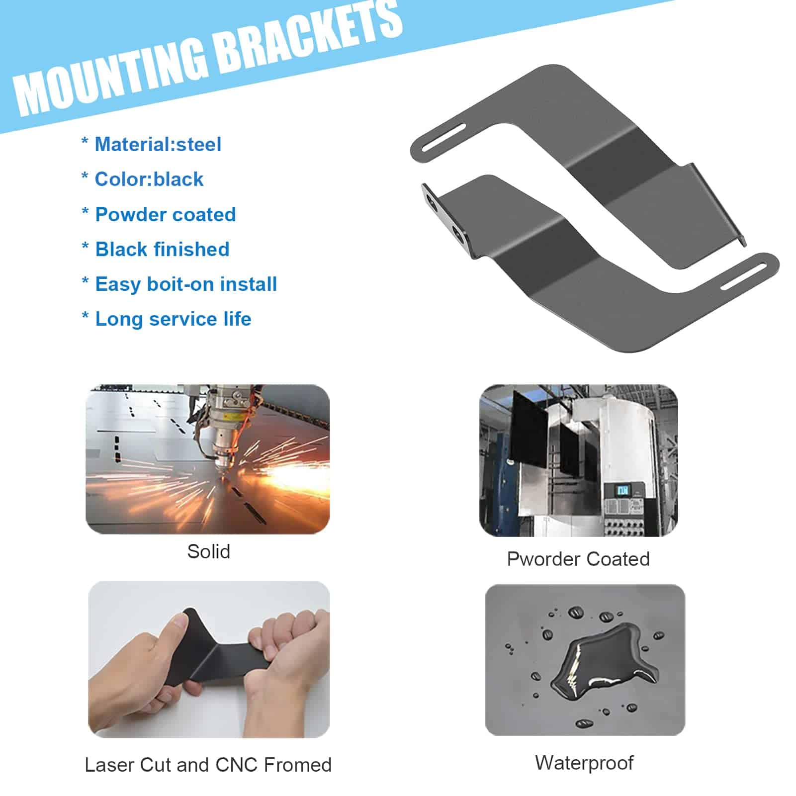Soportes de montaje de parrilla inferior oculta Dasen diseñados para adaptarse a los modelos de Tacoma Pickup 2WD/4WD fabricados entre los años 2016 a 2023. Estos soportes están fabricados con acero cortado con láser de precisión y recubiertos en polvo negro, lo que garantiza su solidez, resistencia al agua y durabilidad. Permiten la instalación de una barra de luz LED de 32 pulgadas de fila única o doble, lo que proporciona una iluminación potente y eficaz durante la conducción. Se debe tener en cuenta que para algunos modelos es necesario realizar taladros y recortes en el parachoques delantero durante la instalación. Se recomienda encarecidamente la instalación profesional para garantizar un resultado óptimo. El paquete incluye un par de soportes de montaje y los tornillos necesarios para la instalación del producto.