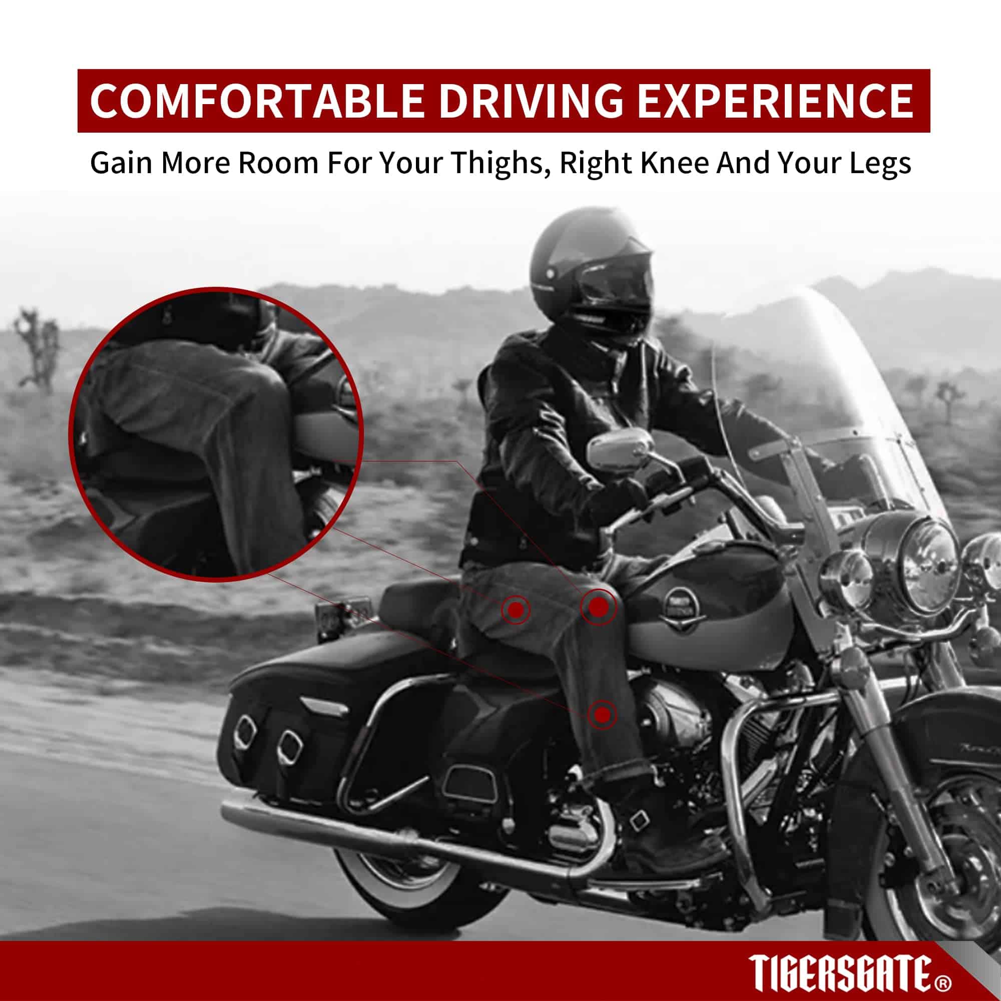 2. Aplicación: Diseñado profesionalmente para reposicionar las plataformas del conductor 1″ hacia afuera y 1″ hacia adelante desde la ubicación original. Obtenga más espacio para sus muslos, rodilla derecha y piernas, para que sus piernas puedan estirarse un poco más, una diferencia notable en comodidad.