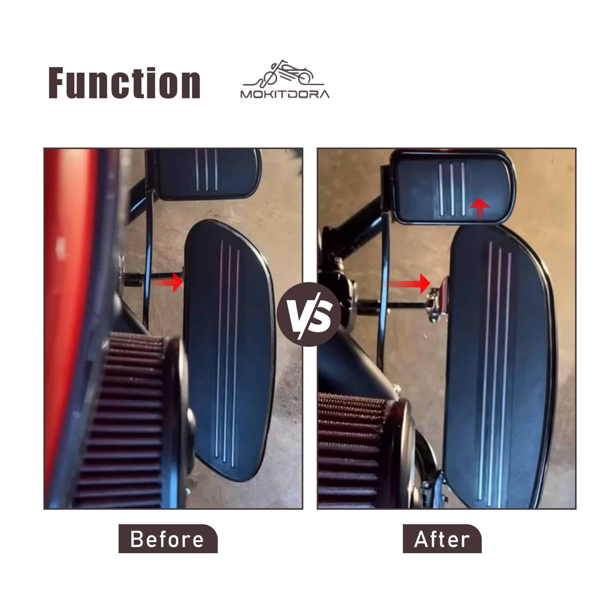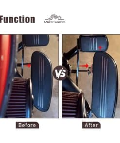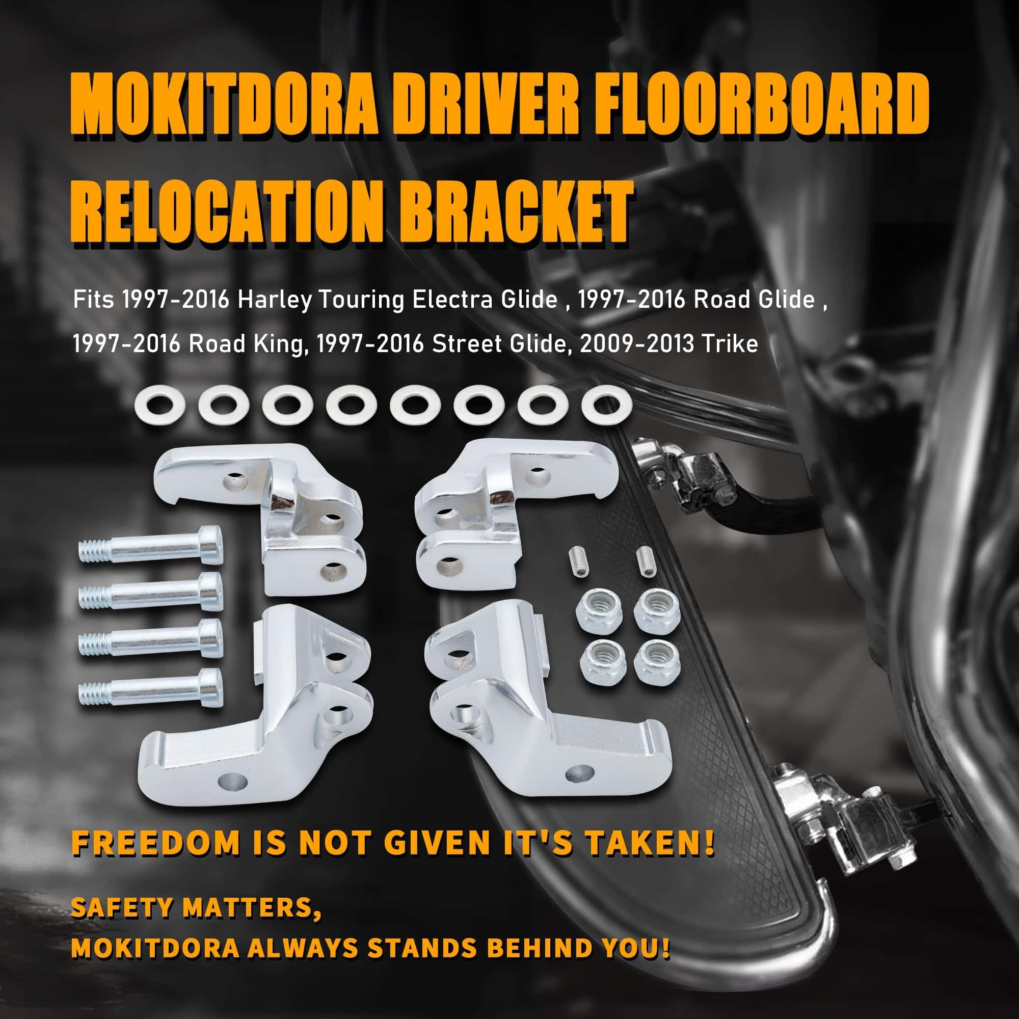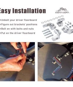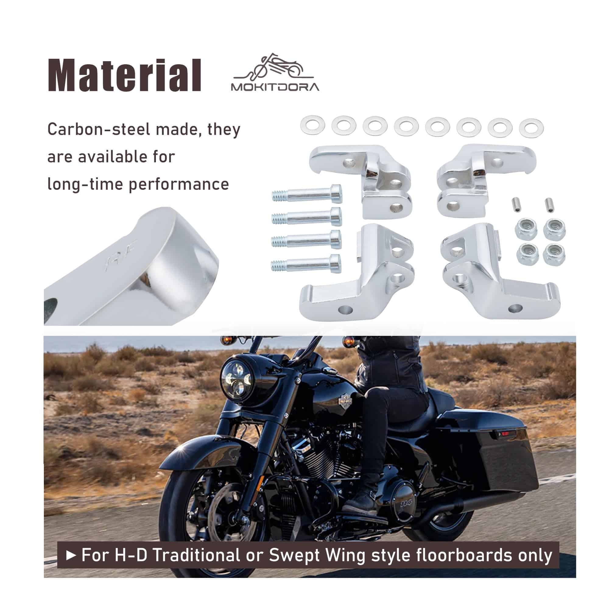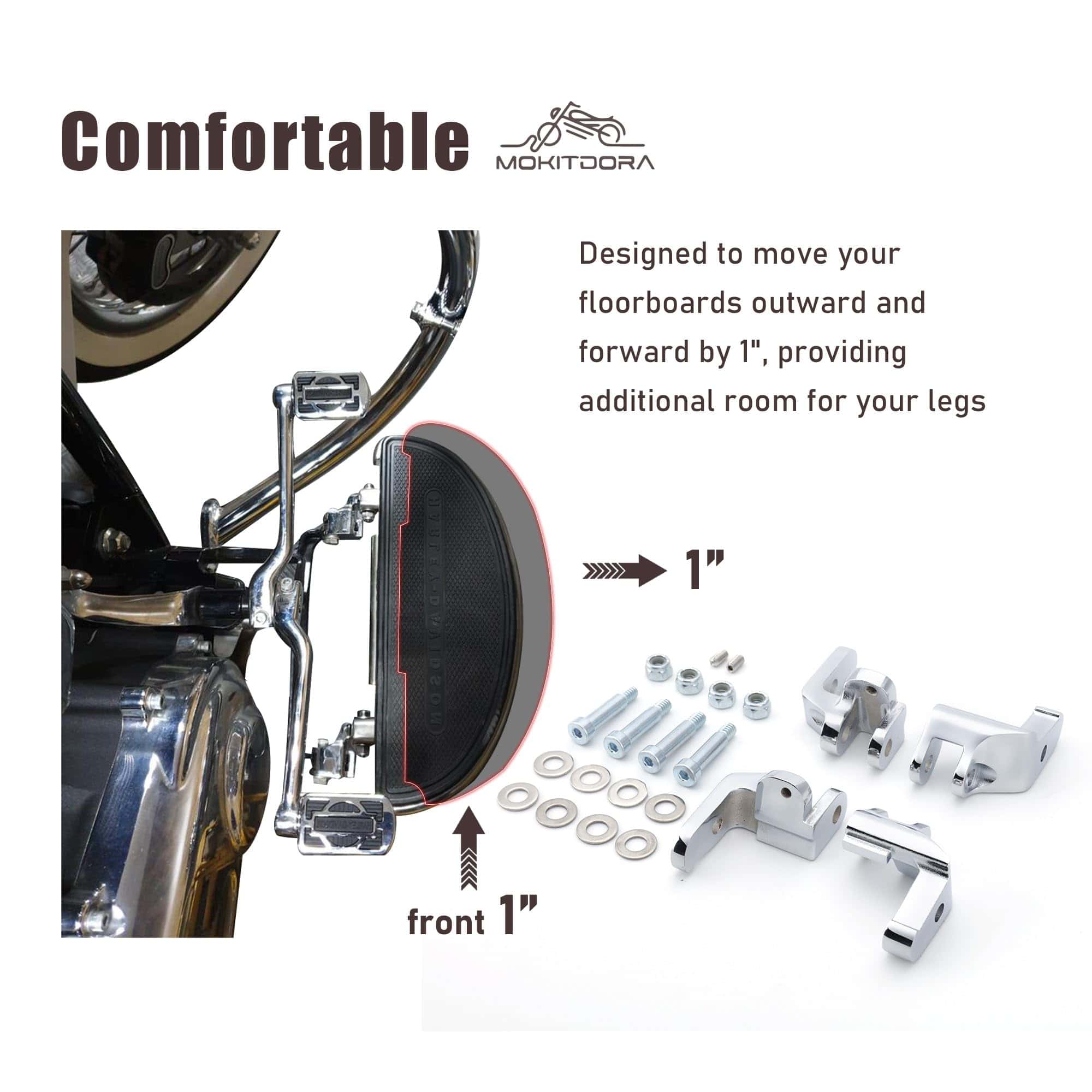 Este kit de reubicación está hecho de acero al carbono de alta resistencia y recubierto de polvo, promete no rayar la superficie. Diseñado para mover los tableros de piso del conductor hacia afuera y hacia adelante en 1″, mantén tu muslo lejos del tanque y evita que tu rodilla derecha roce contra el limpiador de aire. Puedes estirar las piernas y controlar tu moto de una manera más cómoda. Evita cualquier compromiso accidental de los pedales y mejora la experiencia de conducción al reducir las posibilidades de fatiga y malestar en los pies durante viajes largos. Disponible para tableros tradicionales o en forma de ala barrida de HD, con pernos adjuntos, la instalación se puede hacer fácilmente. El extensor de tablero está diseñado para estirar el tablero con componentes premium, en lugar de extender los soportes, lo que puede reducir la carga del soporte y no lo deformará. Se incluyen 4 soportes y hardware necesario como muestra la imagen. Si hay alguna inquietud, respaldado con soporte al cliente las 24 horas.