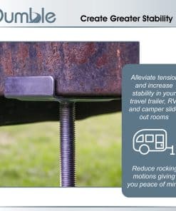Usar tu slide out de camper por largos períodos puede causar problemas de operación del riel deslizante y reparaciones costosas en el marco debido a la caída y flexión. Utiliza los Soportes Estabilizadores para RV de Dumble para aliviar la tensión y aumentar la estabilidad de tus habitaciones deslizantes. Fabricados en acero pesado y acabado en zinc para una mayor resistencia. Cada paquete incluye 2 soportes estabilizadores para camper RV para agregar a tus accesorios de remolque y estabilidad de RV. Este juego de estabilizadores para RV cuenta con soportes para camper RV que se ajustan telescópicamente de 16 a 28 pulgadas (40.6 a 71.1 cm) de altura. Pensados para soportar firmemente contra un miembro estructural para evitar flexiones, movimientos bruscos y movimiento no deseado. Capacidad de peso de 5,000 lbs pero no está diseñado para elevar o transportar carga completa. Advertencia: Este producto puede exponerte a químicos que se sabe que causan cáncer y defectos de nacimiento u otros daños reproductivos según el Estado de California.