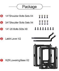 Soportes para Bajar Asientos FHV Pair RZR Base de Bajo Asiento Soportes Bajar Asiento 1.5″ Base de Bajo Asiento y Reclinación de 6 Grados para Polaris RZR 800/900 / S 1000 / XP 1000 / XP Turbo/General – Ajuste perfecto para varios modelos de RZR, incluidos RZR S 900, RZR S 1000, RZR XP 1000/Turbo, RZR Turbo S, RZR RS1, Polaris General, y todas las máquinas equipadas con asientos de estilo RZR 1000. Fabricado con acero de alta calidad y recubierto en polvo negro para una durabilidad excepcional y resistencia a condiciones adversas. La base de bajada de asiento proporciona una mayor comodidad y espacio para el conductor, evitando golpes en el techo y el volante. Ideal para aventuras todoterreno, brindando una posición más segura y cómoda. Nota: Se recomienda la instalación profesional y pueden requerirse modificaciones durante el proceso de instalación.