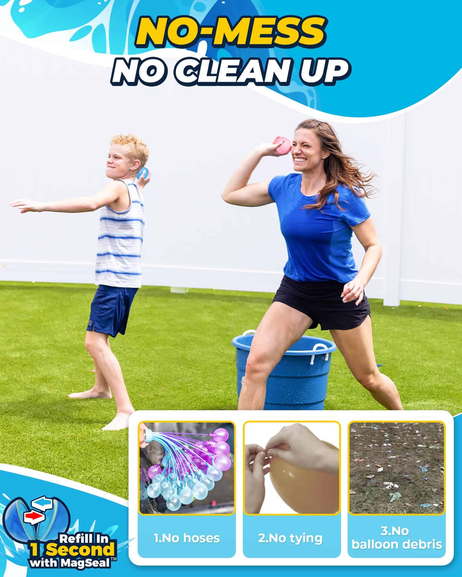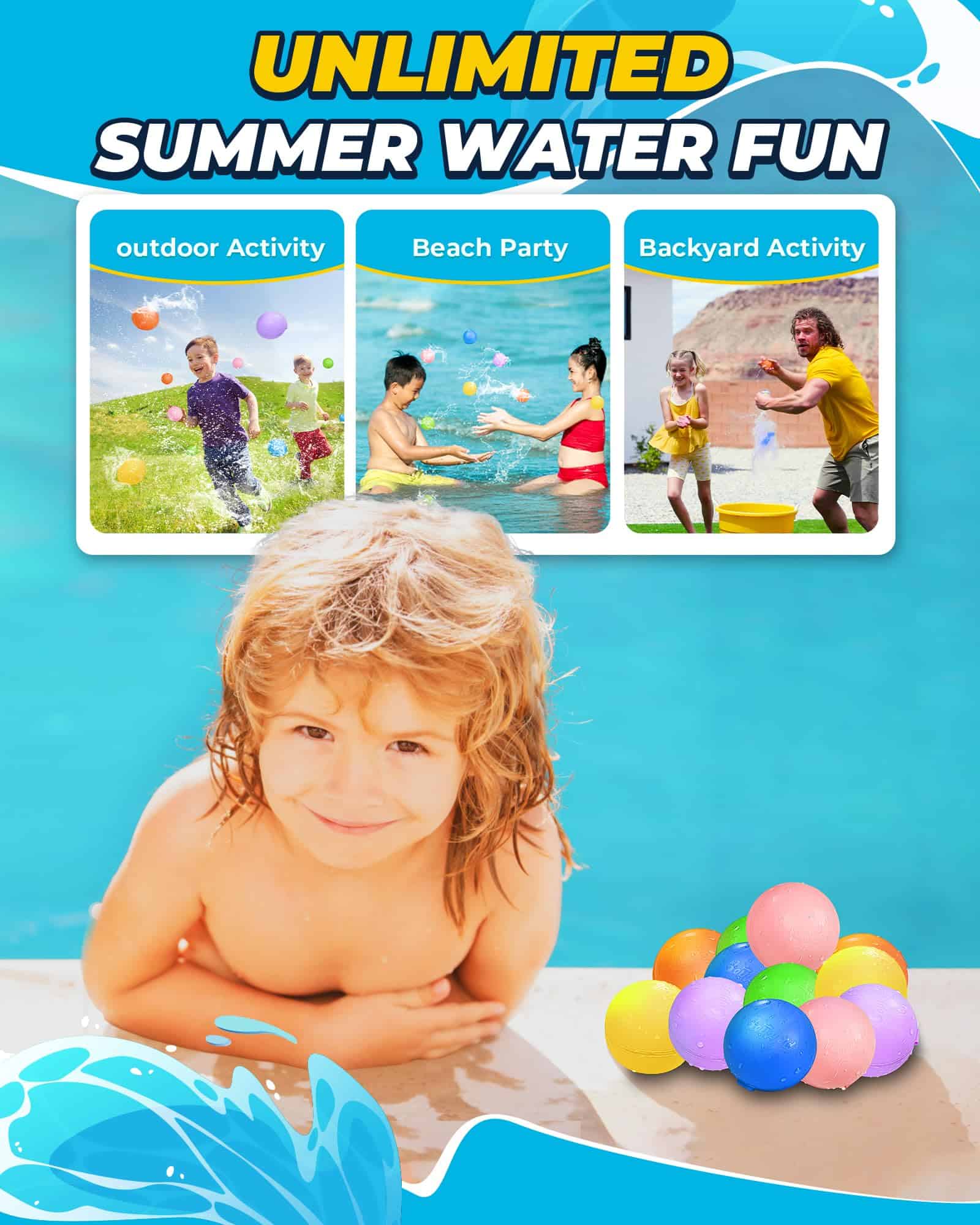 Todos sabemos que lo peor de los globos de agua tradicionales es encontrar restos de látex en el jardín durante días. ¿Existe una mejor alternativa a los globos de agua desechables? Sí, ¡los globos de agua reutilizables de SOPPYCID sin desperdicio! Están hechos de silicona premium libre de látex y cuentan con la última tecnología de cierre magnético mejorada. ¡Esto significa más tiempo para la diversión y menos tiempo recogiendo trozos de globos en tu patio! Para su diseño innovador y único, nuestro Globo de Agua Magnético Reutilizable es el ganador del Premio de Diseño Rojo Alemán y el Premio de Diseño iF 2023. Las batallas en el patio trasero serán más divertidas que nunca con estos globos de agua reutilizables. ¡Solo un segundo de llenado rápido, la pelea de globos de agua se convierte en una actividad al aire libre realmente extendida y elimina la tediosa tarea de llenar los globos, dejando la diversión para ti! No hay día de verano completo sin días pasados en juegos de pelea de globos de agua. Ya sea en el patio trasero, fiestas en la piscina, juegos en la playa, los juegos de pelea de polo acuático siempre son la mejor opción para las actividades al aire libre. En lugar de quedarse sin globos en 5 minutos con los globos de agua tradicionales, estos globos de agua reutilizables son todo lo contrario: menos dinero para gastar y más veces para jugar. Simplemente consíguelos y disfruta de las peleas de globos de agua cada verano como un niño. Fáciles de usar y sin impacto, incluso tu pequeño que aún no ha desarrollado la destreza con los dedos puede disfrutar del globo de agua. Gracias a los imanes incrustados dentro del borde de silicona en lugar de fuera, ser alcanzado por este globo de agua es completamente seguro y sin dolor. Los padres estarán aliviados al ver que este juguete acuático mantiene a los niños entretenidos. Los globos de agua son de buen tamaño, se sienten suaves y vienen con una práctica bolsa con cordón para ayudarte a llevarlos y guardarlos para el próximo uso. Todo eso hace que este juguete acuático sea un regalo perfecto para niños y también para adultos. A la gente le gusta que sean suaves, duraderos, reutilizables y fáciles de guardar. Obtén un set y estarás encantado con los resultados.